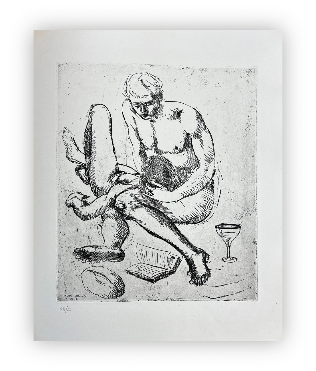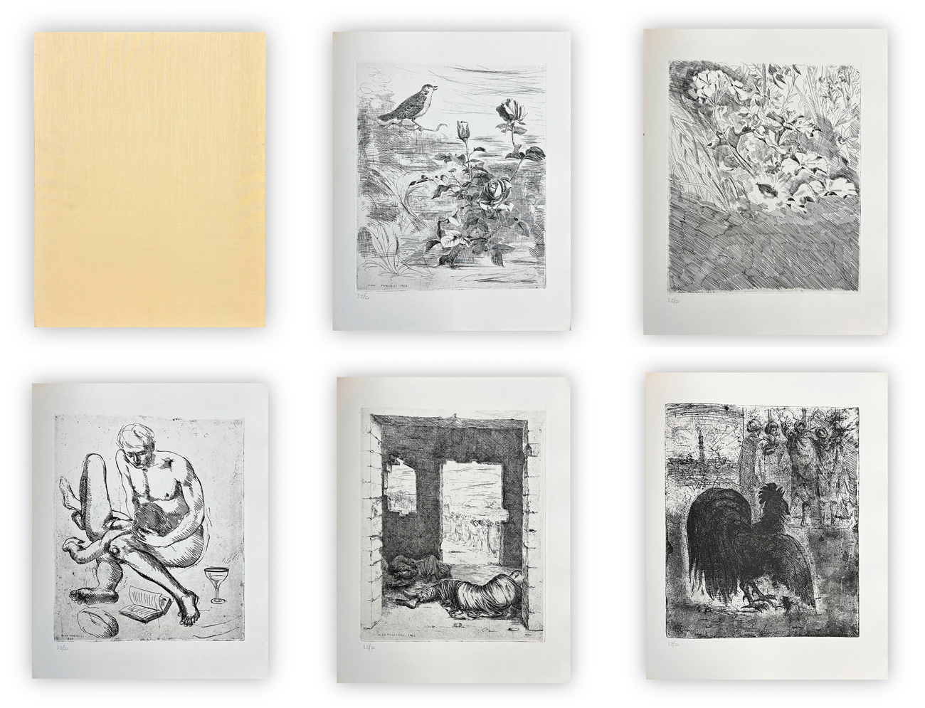 Splendida edizione d'arte recante introduzioni di Ugo Moretti e Giorgio Costantini e 20 quartine di Omar Khayyam illustrate da 20 incisioni di Aldo Pagliacci, ciascuna recante firma datazione in lastra e numerazione (Esemplari 32/50) a matita al fronte