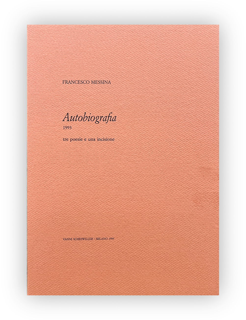 Edizione realizzata in 99 copie in numeri arabi + X copie in numeri romani, in occasione dei 93 anni di Francesco Messina