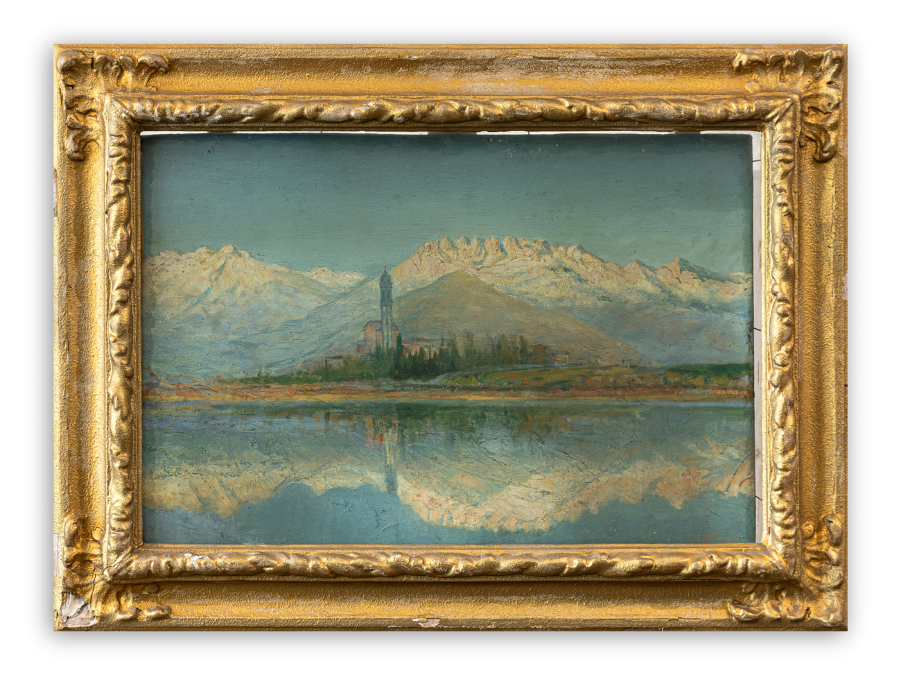 GIACINTO TRUSSARDI (1881-1947) - Garbagnate Rota al lago di Pusiano e il Resegone. Meriggio in alta Brianza