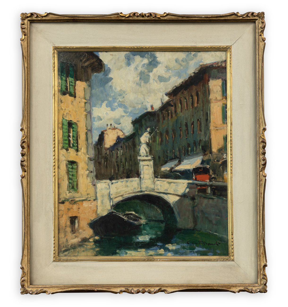 CIRANO CASTELFRANCHI (1912-1973) - Vecchia Milano. Sul Naviglio al Ponte di P. Romana