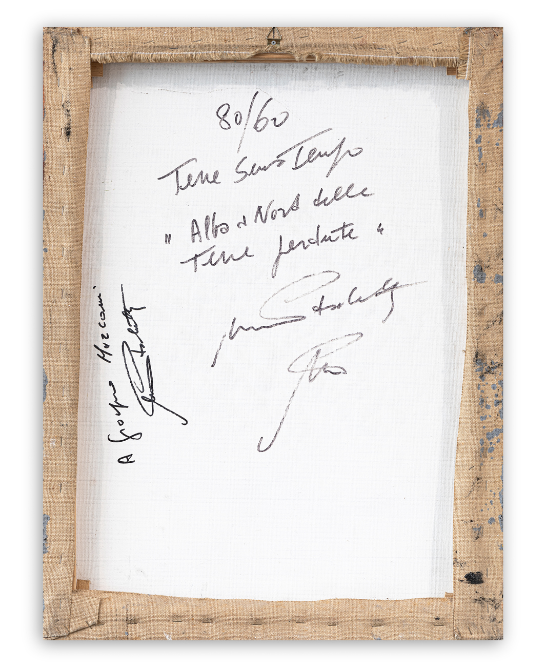 Certificato di autenticità a cura dell'Artista recante etichette delle esposizioni tenutesi a Lugano e Lecco