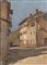 FIrma illeggibile (XX secolo) Scorcio con case Olio su tela 45x33 cm
