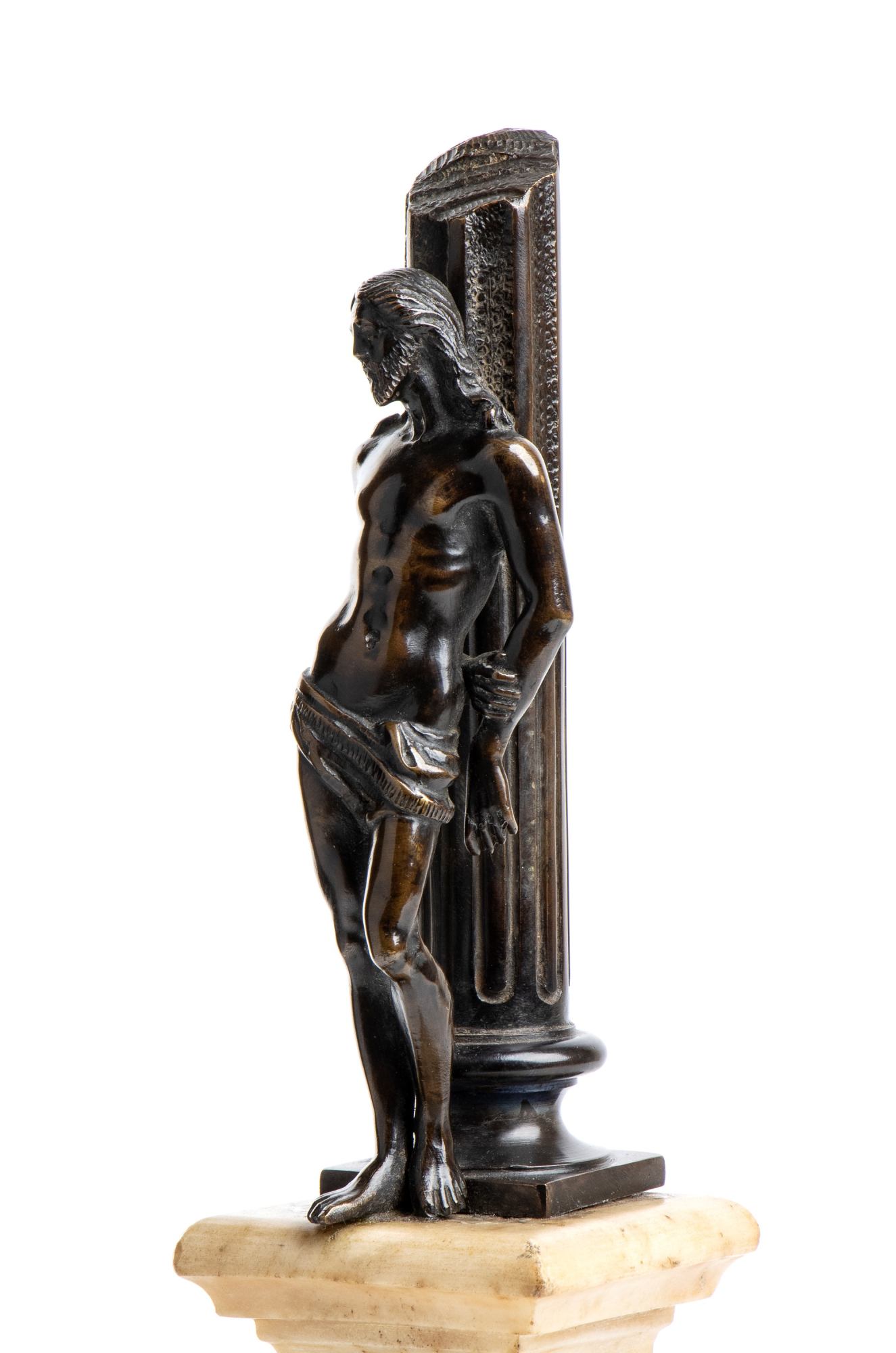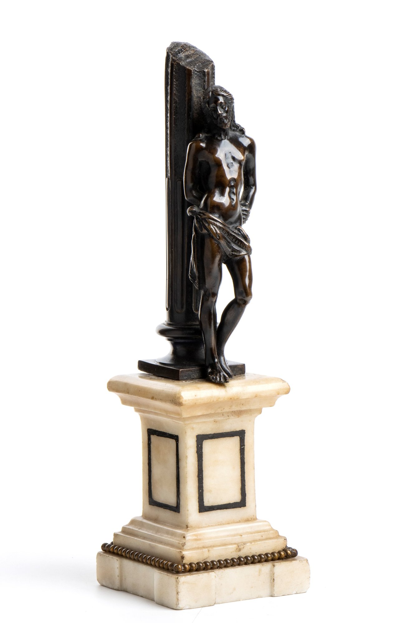 Il modello di questo interessante "Cristo alla Colonna" va sicuramente ascritto all'ambito del grande scultore rinascimentale Guglielmo della Porta, e infatti risulta essere identico a quello del Walters House Museum, dove viene schedato "dal modello di Guglielmo della Porta". Allo stesso tempo il bronzo è molto simile al modello appartenente alla "Quentin Collection" (pubblicato nel catalogo della mostra tenutasi alla Frick Collection nel 2004-2005 a New York), da cui si differenzia principalmente per l''orientamento dello sguardo (il modello della Quentin Collection guarda alla propria sinistra).