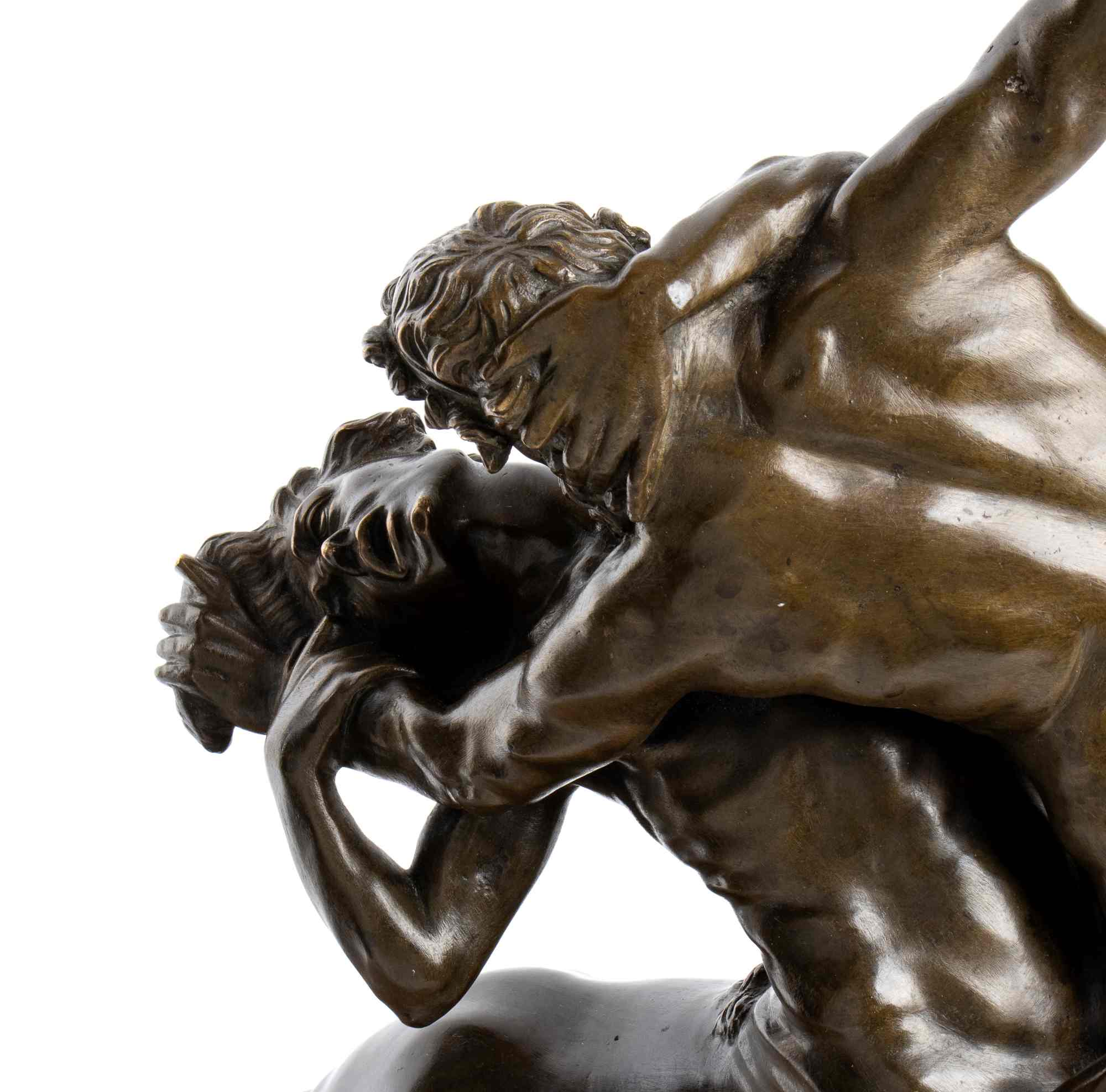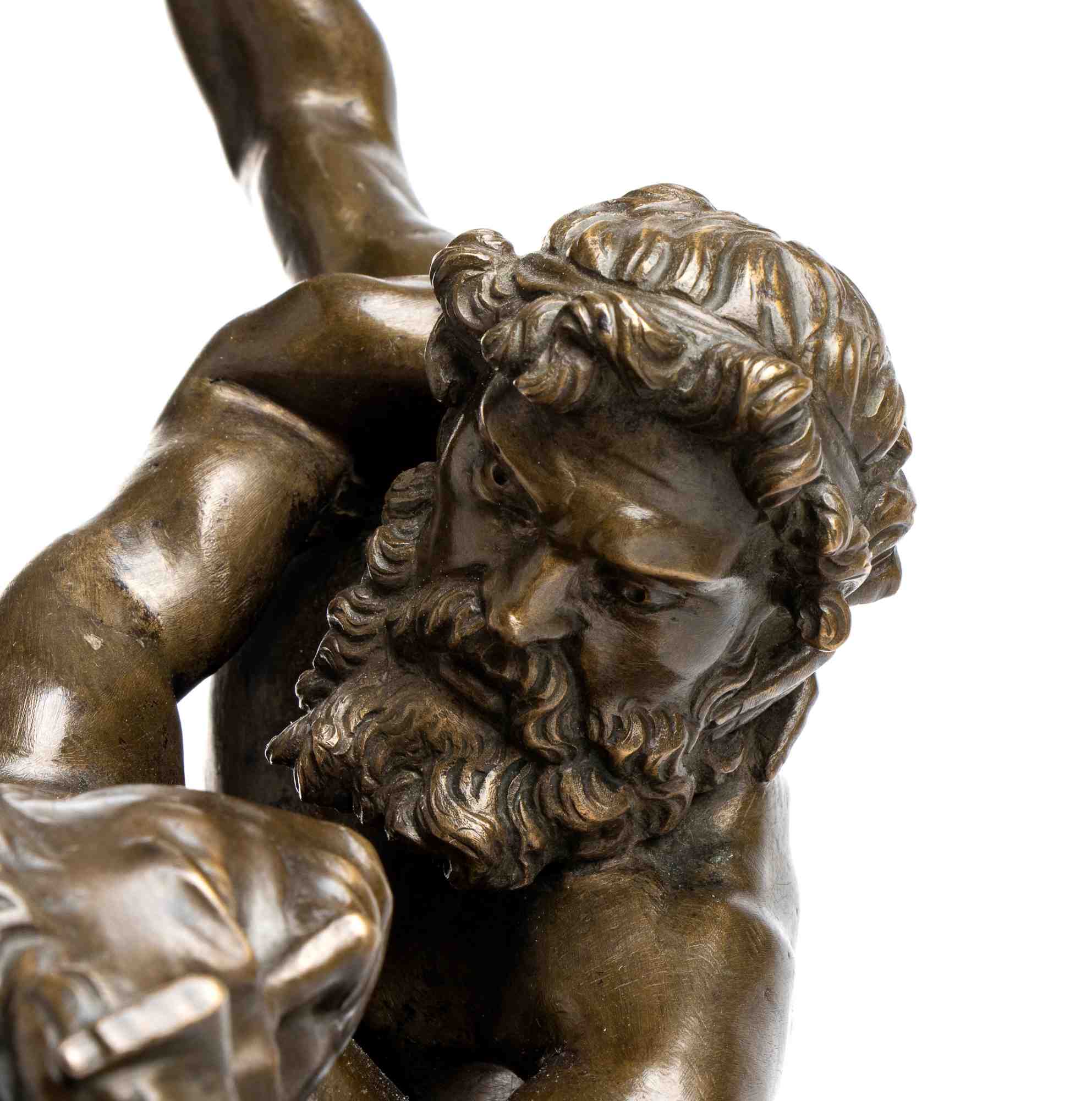 Modello di riferimento è la scultura in marmo realizzata dal Giambologna, ora sotto la Loggia dei Lanzi a Firenze, trasposta in bronzo sempre dal grande scultore fiammingo e dalla sua scuola.