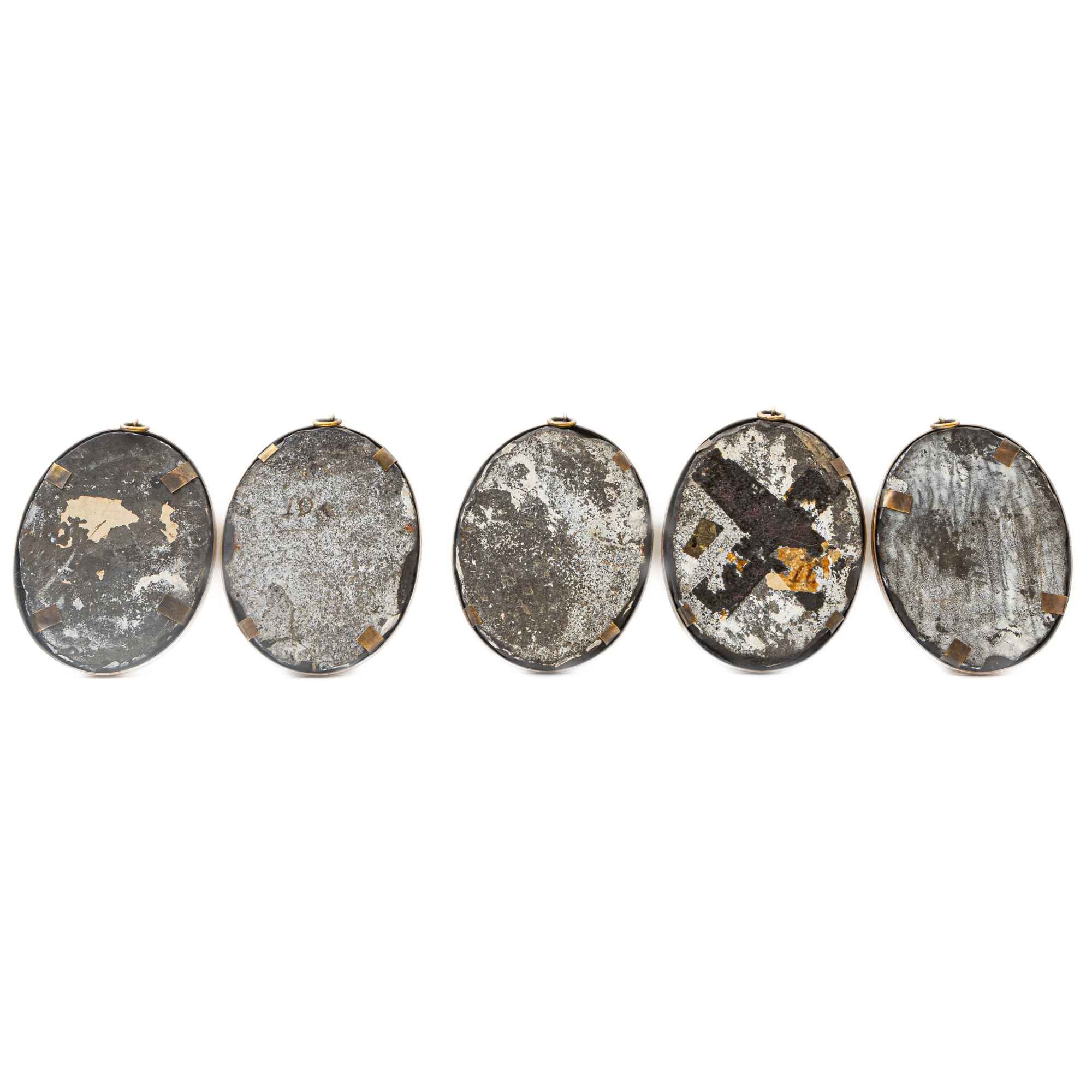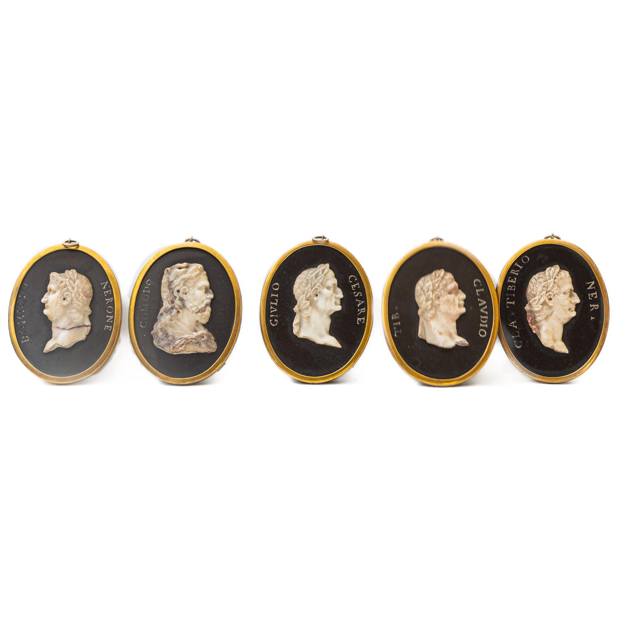 Gruppo di cinque Medaglioni ovali raffiguranti profili di imperatori romani.