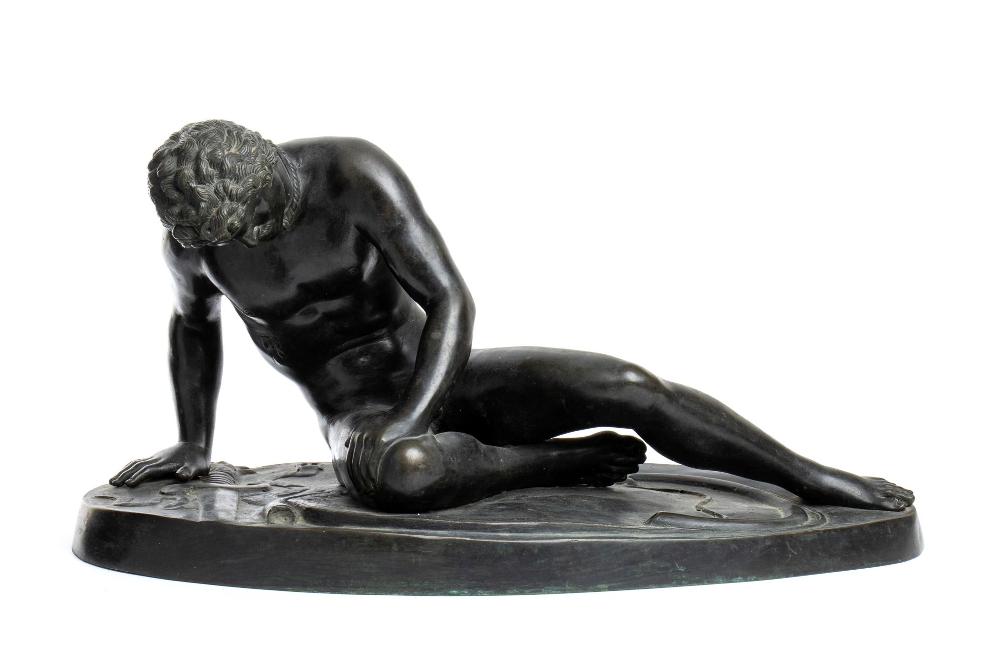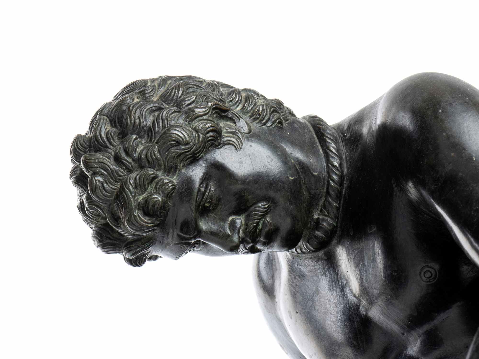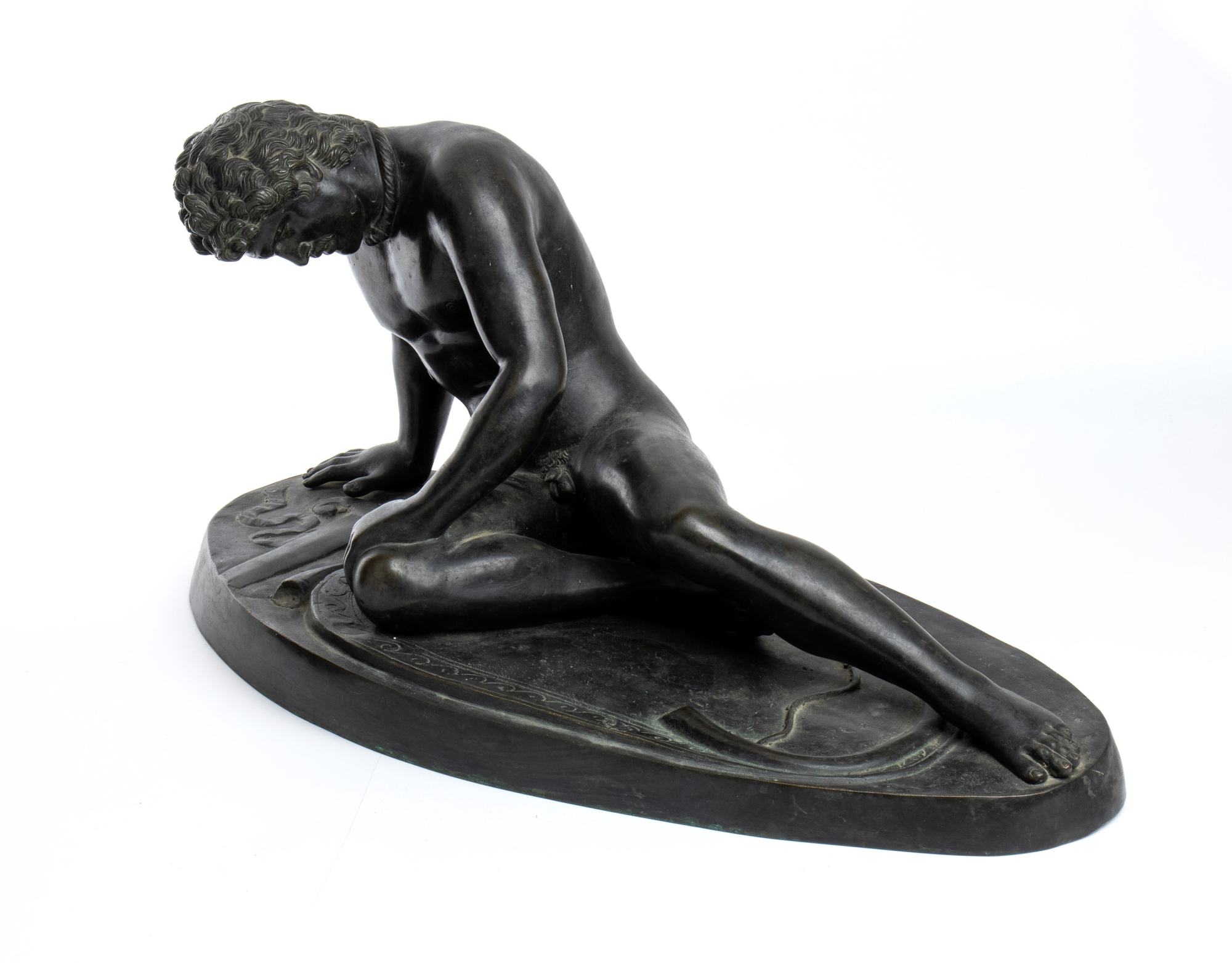 Trattasi della riproduzione in bronzo della nota scultura marmorea conservata nei Musei Capitolini di Roma: il "Galata Morente", copia romana di un'originale bronzeo ellenistico attribuito ad Epigono (230-220 a.C.). Esistono copie in bronzo del Galata documentate sin dal XVII sec., epoca in cui il marmo emerse dagli scavi di Villa Ludovisi. Per tutti valga la fusione conservata al Museo Nazionale del Bargello, opera di Giovan Francesco Susini ( Firenze, 1585 - Firenze?, 1635 circa).