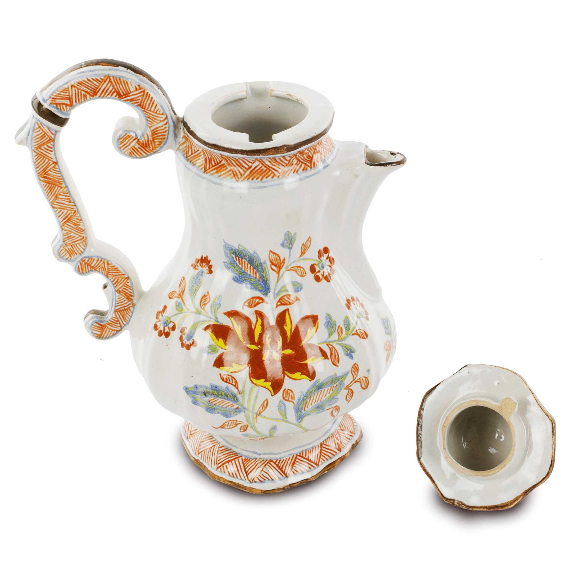 Caffettiera in ceramica policroma,