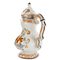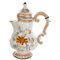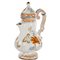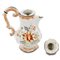 con corpo globulare costolato e rastremato verso l'alto, con coperchio a cuspide e piede d'appoggio ad anello. Presa  a doppia virgola e versatoio a becco.