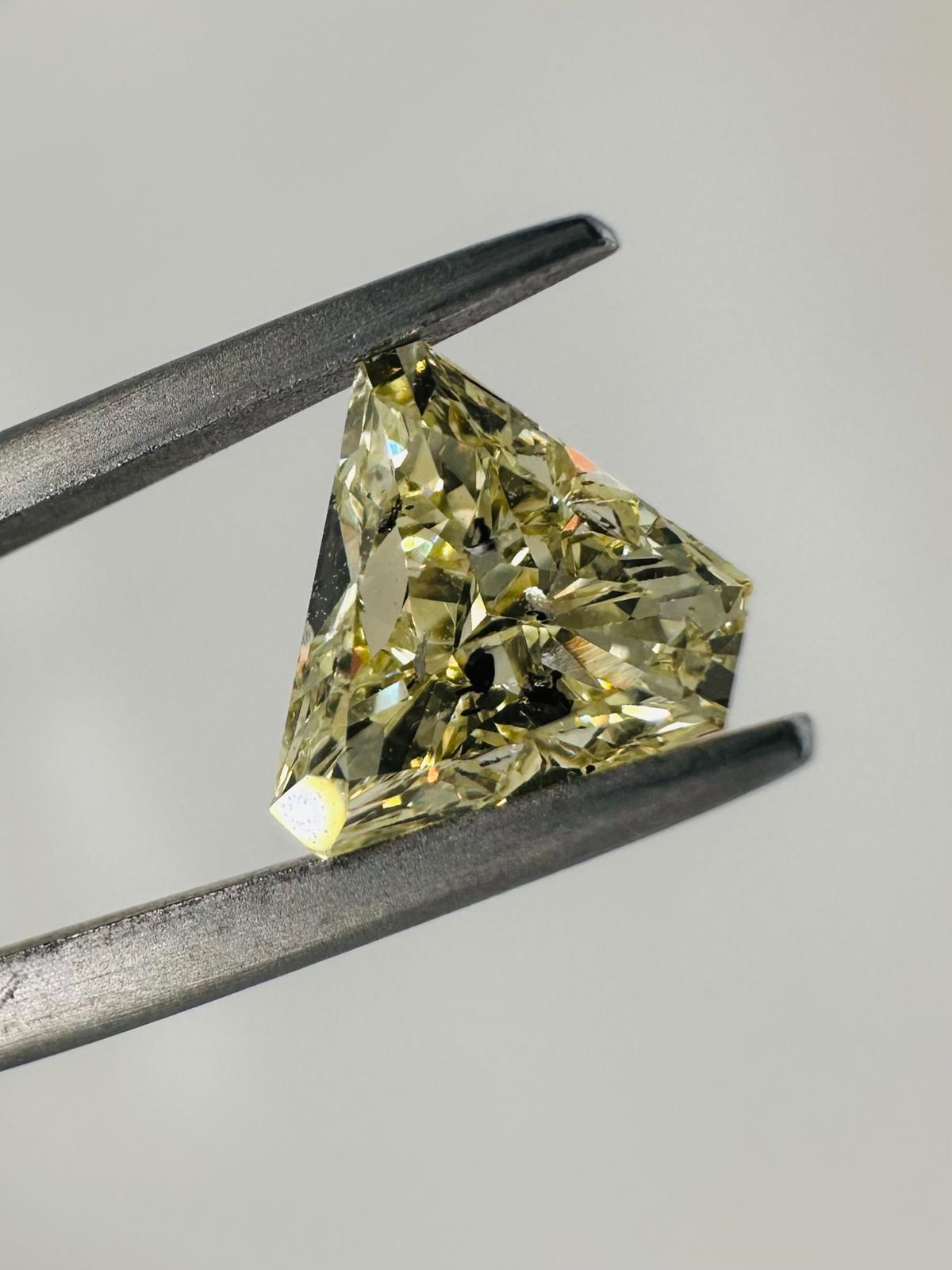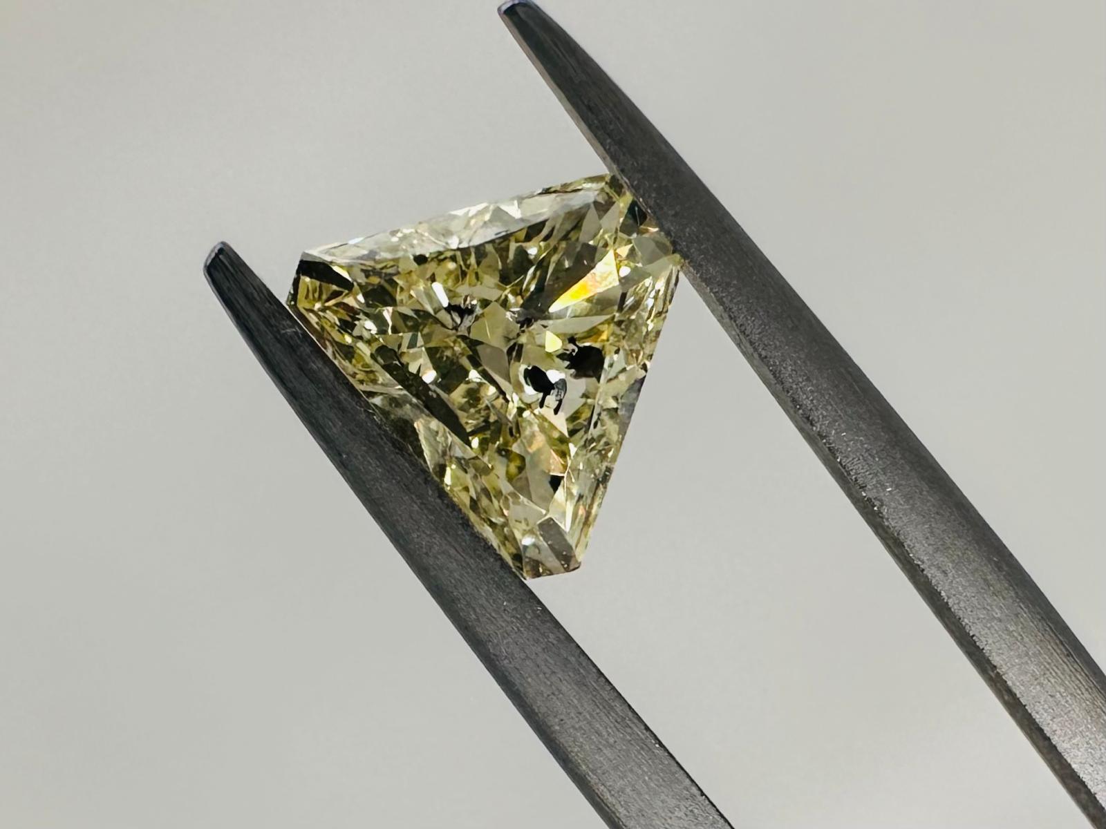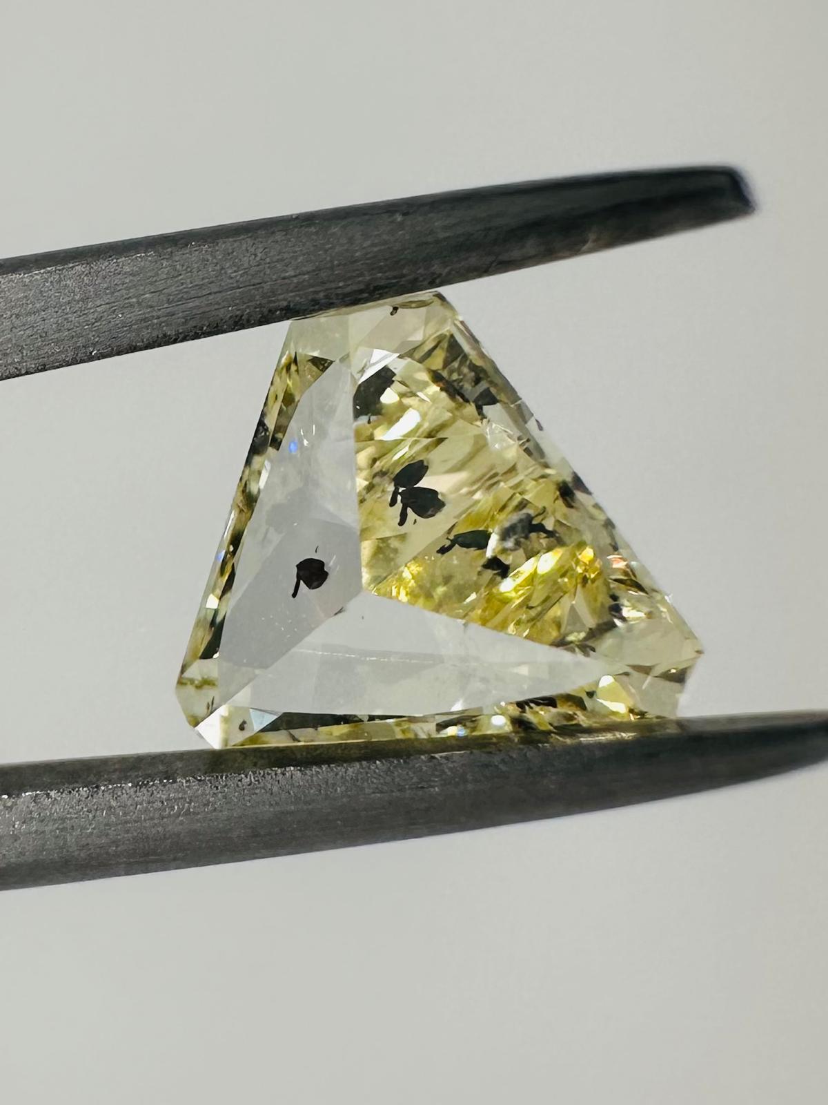 DIAMANTE FANCY COLOR 0,81 CARATI COLORE GIALLO - PUREZZA I1 - TAGLIO TRIANGOLARE - CERTIFICATO GEMMOLOGICO MAROZ DIAMONDS LTD MEMBRO ISRAEL DIAMOND EXCHANGE - NUMERO INCISO AL LASER NELLA CORONA - BB40301-6-LC