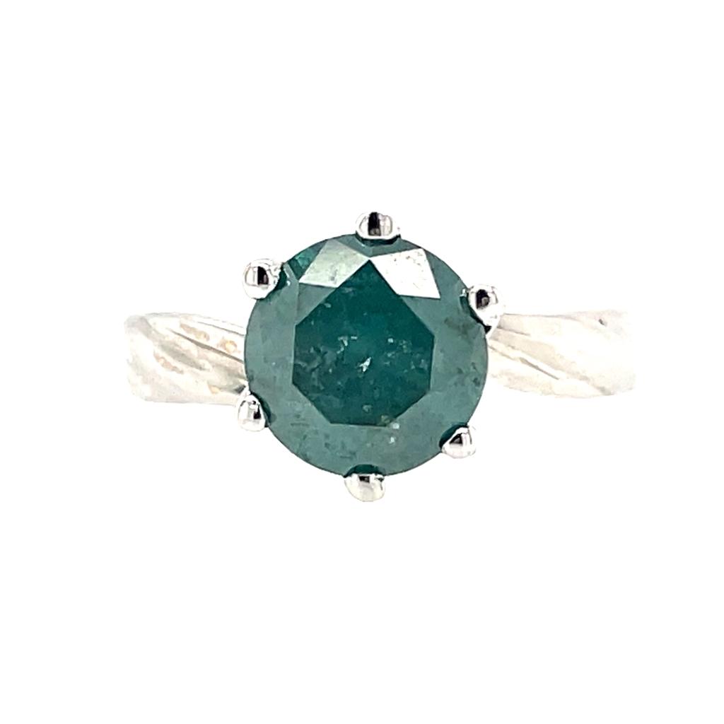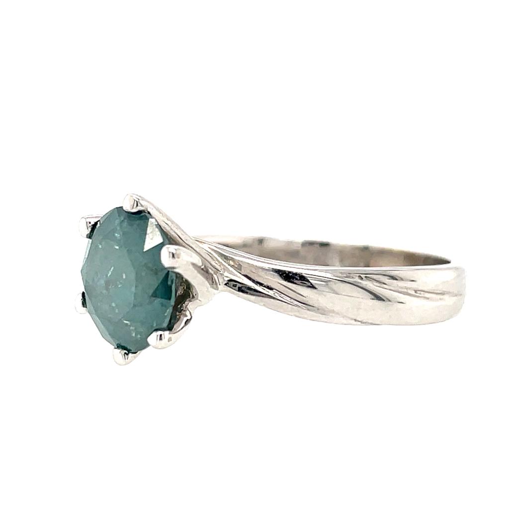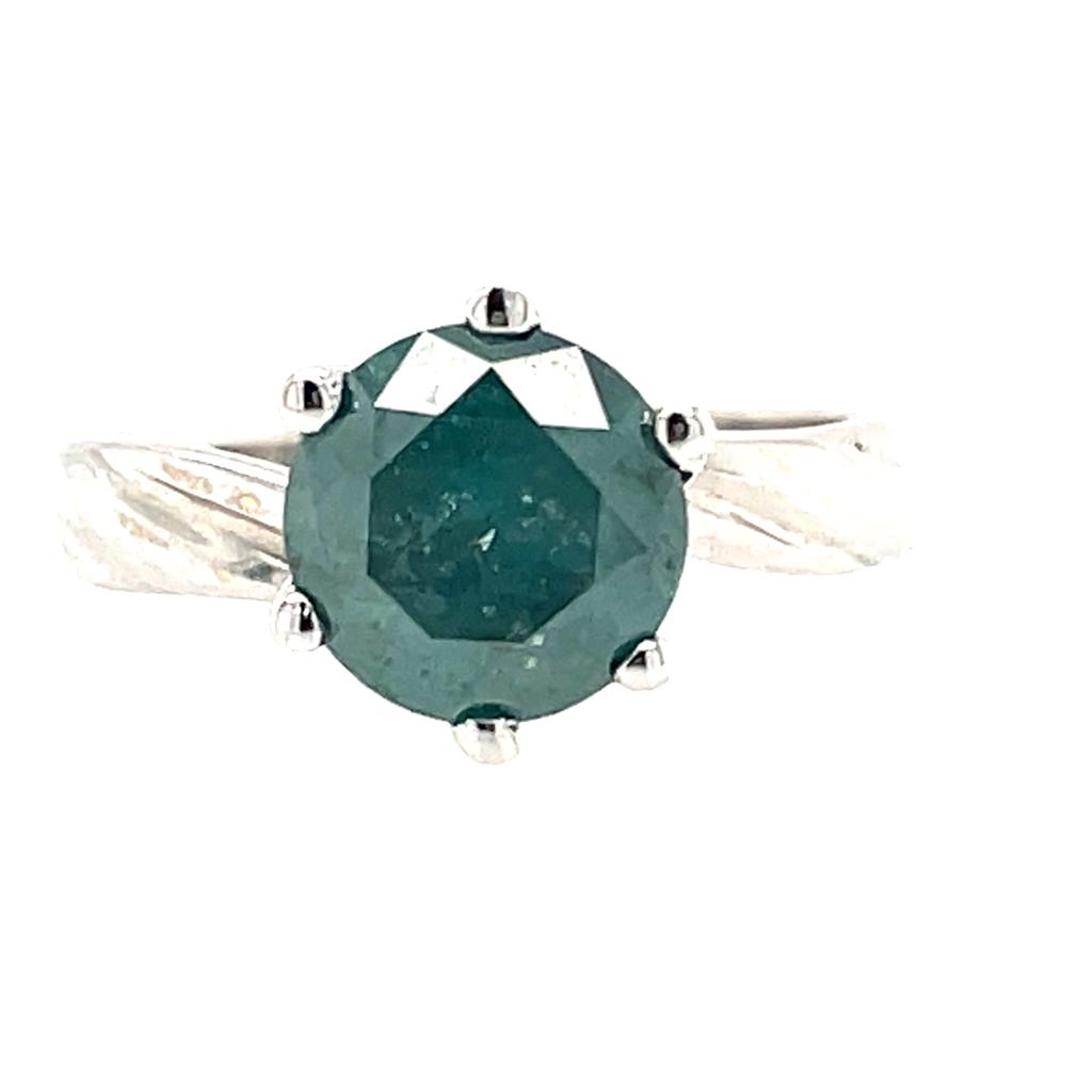 ANELLO IN ORO BIANCO 14K 3.60 GR CON DIAMANTI PER 2.15 CARATI BLU COLORE ESALTATO I2 - R127