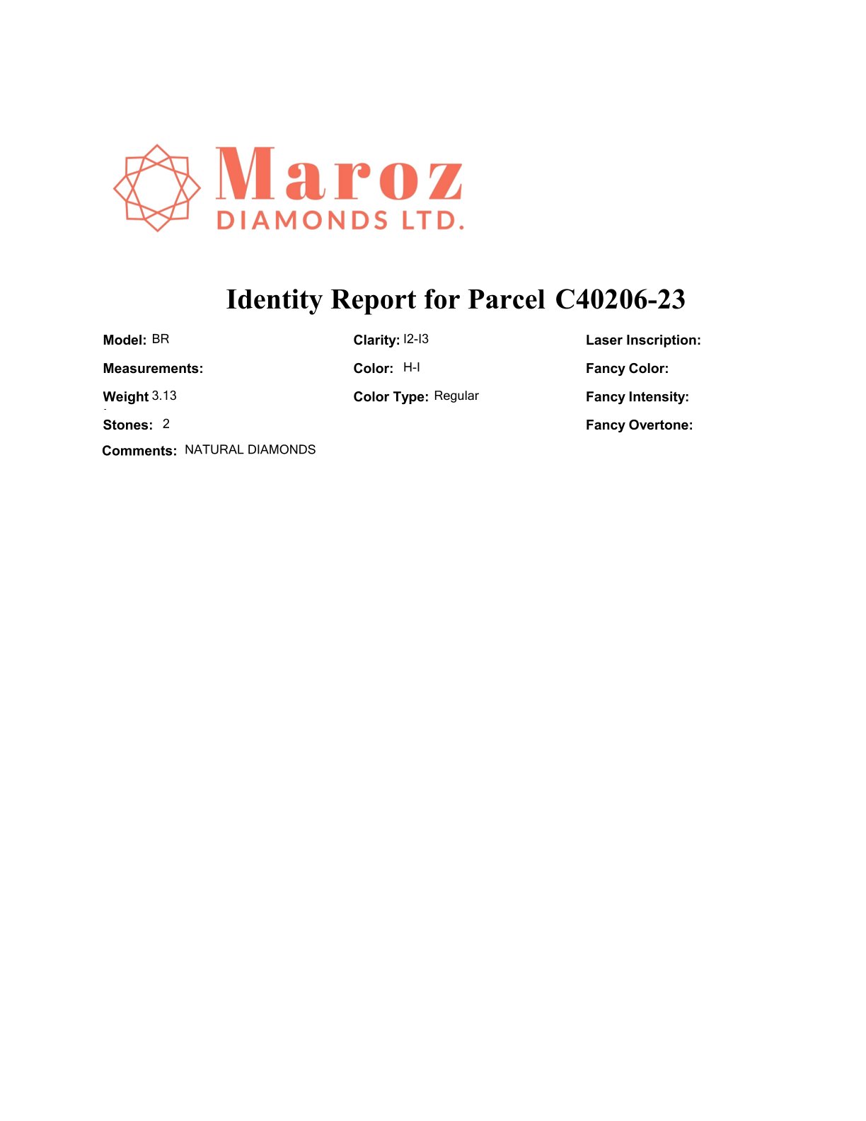 2 DIAMANTI 3,13 CARATI COLORE H-I - PUREZZA I2-I3 - TAGLIO BRILLANTE - CERTIFICATO GEMMOLOGICO MAROZ DIAMONDS LTD MEMBRO ISRAEL DIAMOND EXCHANGE - C40206-23