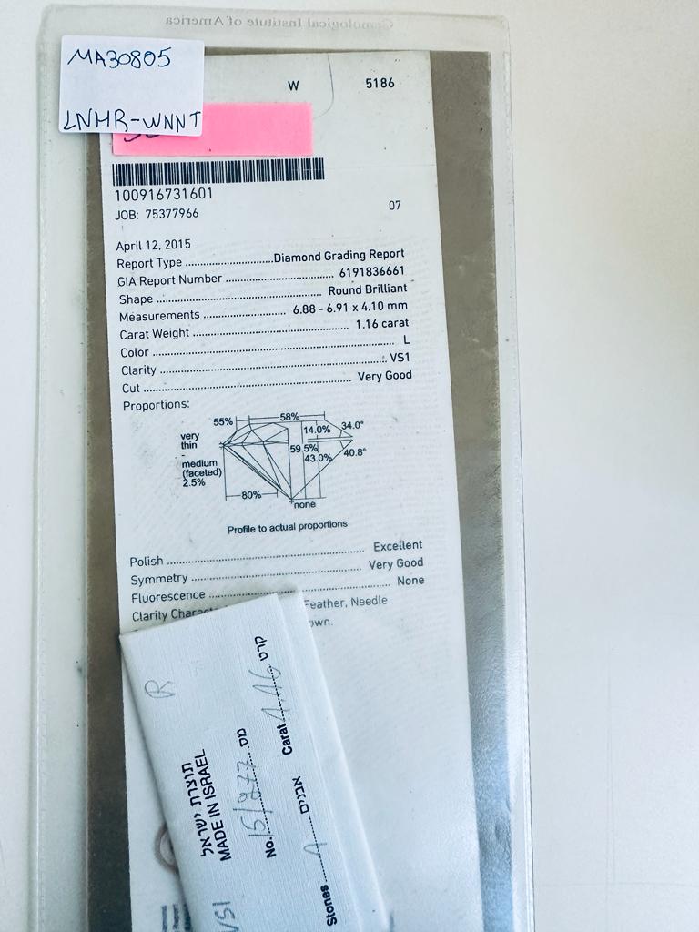 DIAMANTE 1,16 CARATI L - VS1 - GIA - MA30805