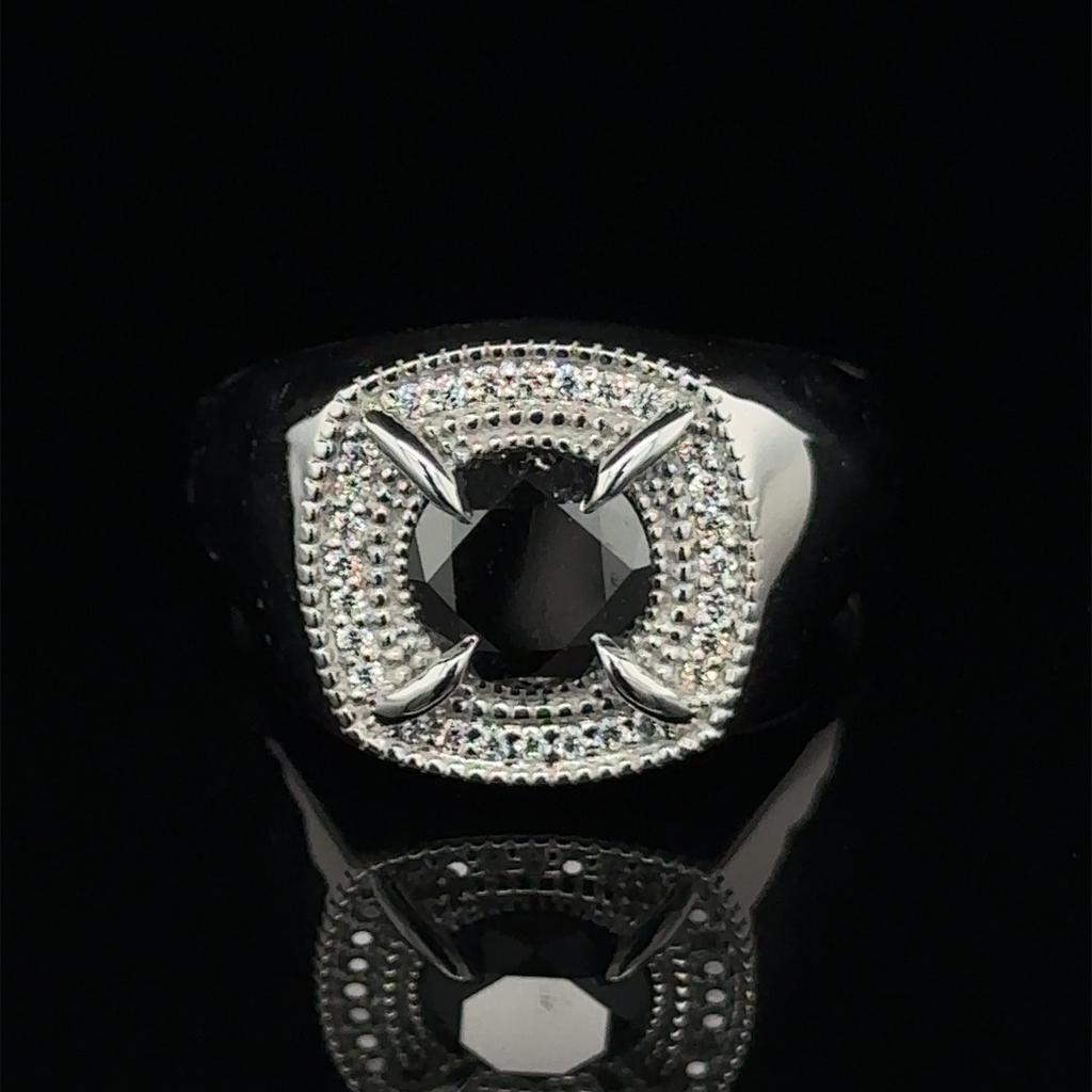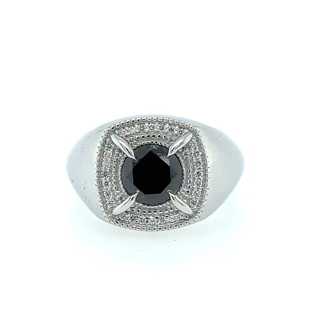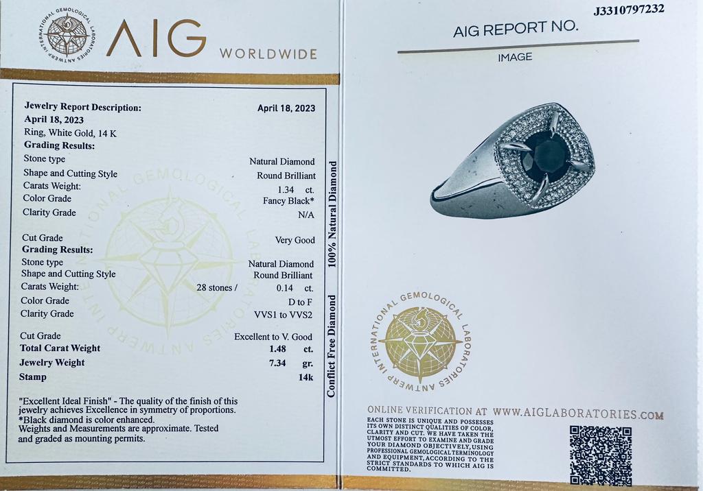 ANELLO IN ORO BIANCO 14K 7.34 GR CON DIAMANTE DA 1.34 CARATI COLORE FANCY NERO + BRILLANTI PER 0.14 CARATI COLORE D-F PUREZZA VVS1-VVS2 TAGLIA-10.5 CERTIFICATO AIG - RNG30402