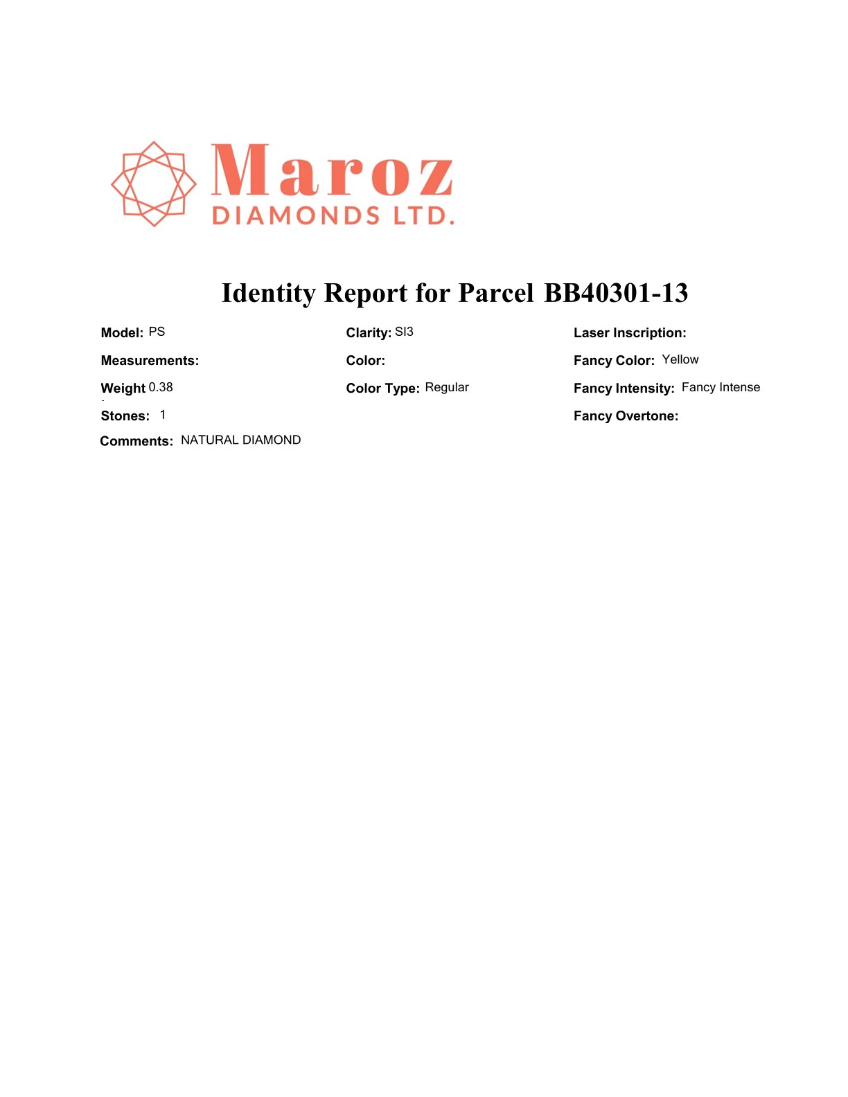 DIAMANTE 0,38 CT GIALLO INTENSO - SI3 - BB40301-13