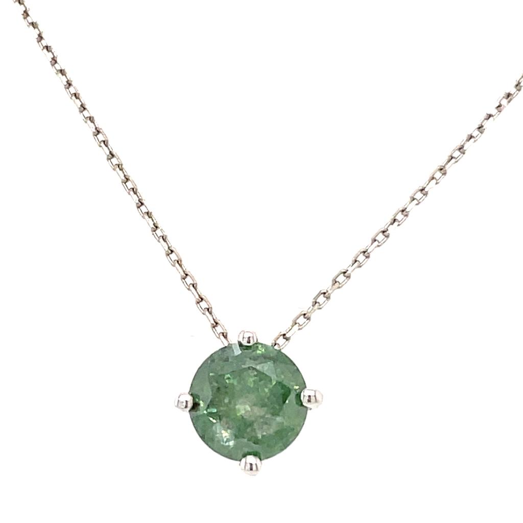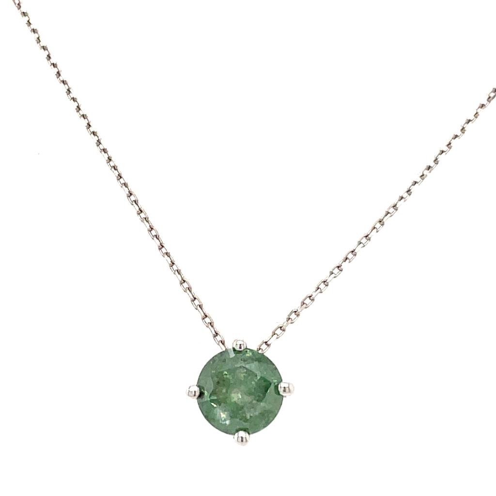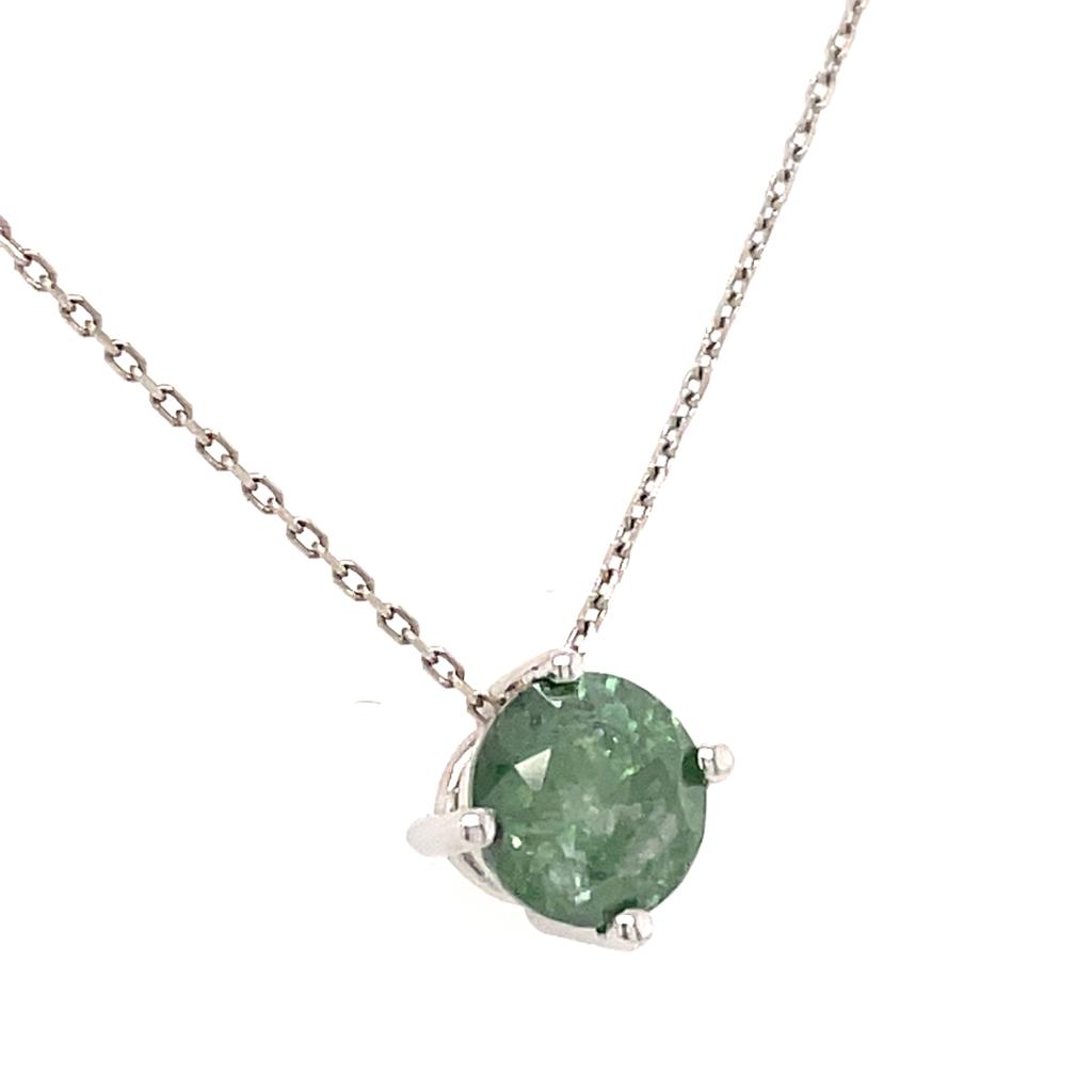GIROCOLLO IN ORO BIANCO 14K 1.91 GR CIONDOLO CON DIAMANTE GREEN COLORE ESALTATO PUREZZA I1-2 COLORE ESALTATO- PND20412