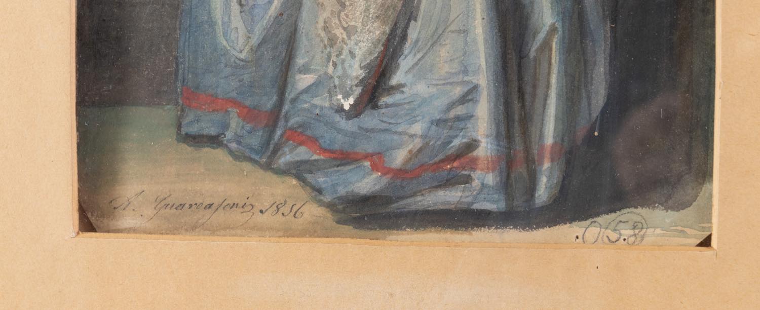 Acquerello su carta. Cm 32x19. Reca firma indecifrata in basso a sinistra e data 1856.