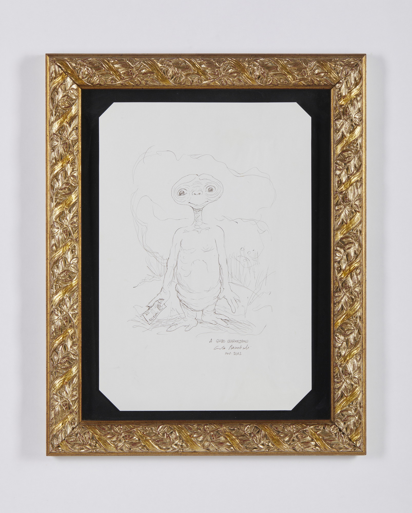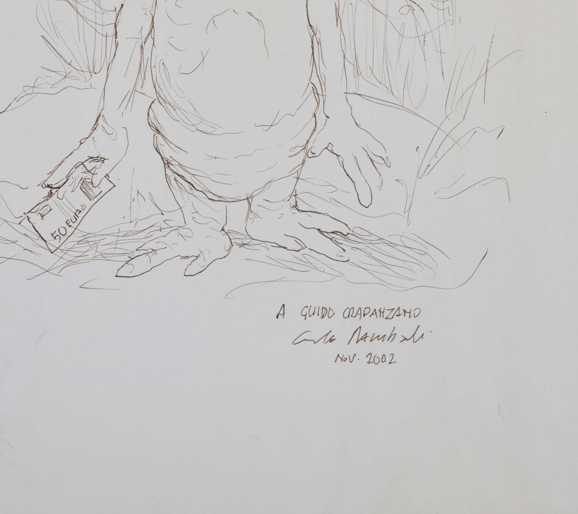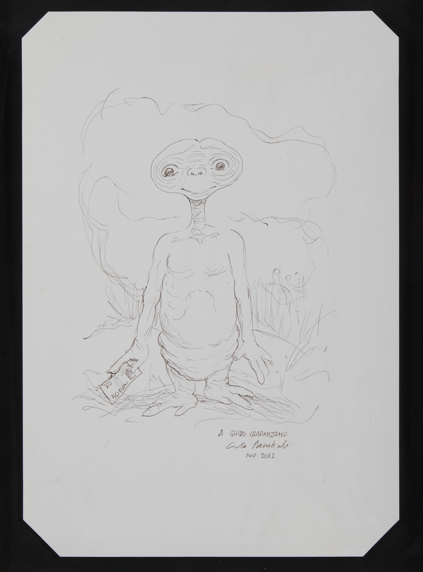 RAMBALDI EMANUELE (1903 - 1968) SENZA TITOLO, 2002. Inchiostro su carta. Cm 30,00 x 43,50. firma, data, dedica ad personam. Cornice presente