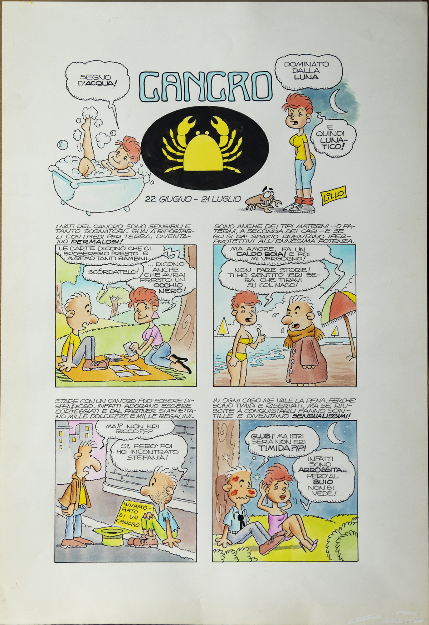 LILLO La serie dei segni zodiacali. 1999. Chine colorate su Cartoncino Schoeller. Cm 36,00 x 25,00. Tavola sul segno zodiacale del Cancro con velina trasparente di protezione.