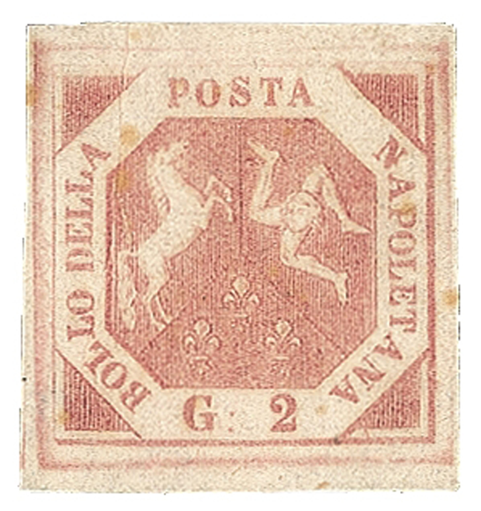 Antichi Stati Italiani - Napoli - 1858 - 2 grana (5 cat.2200)2 grana rosa I tavola (5 cat.2200) - nuovo con gomma originale