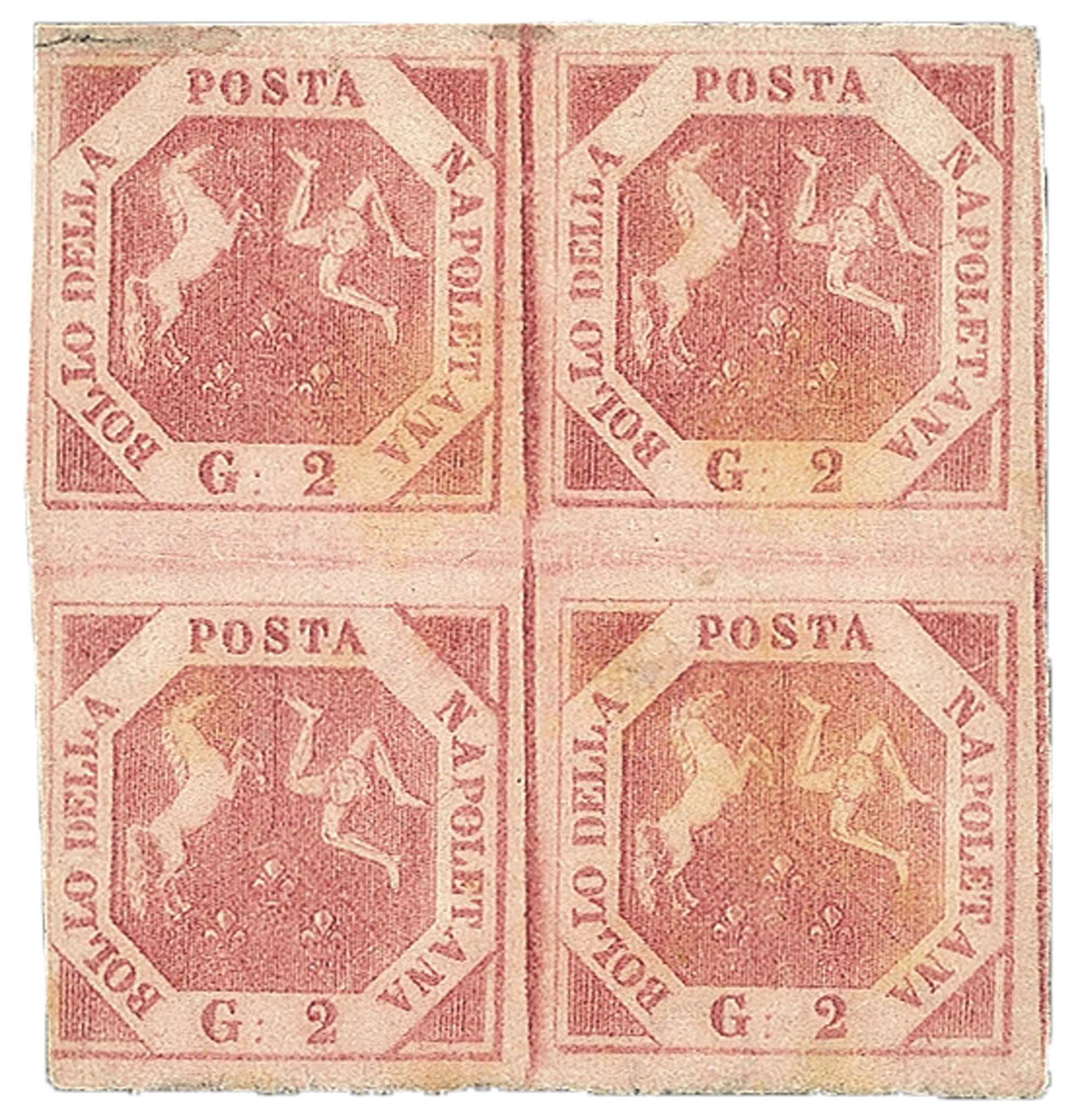 Antichi Stati Italiani - Napoli - 1858 - Quartina del 2 grana (7d)Quartina del 2 grana carminio III tavola (7d) - nuovo con piena gomma originale - cert. Raybaudi
