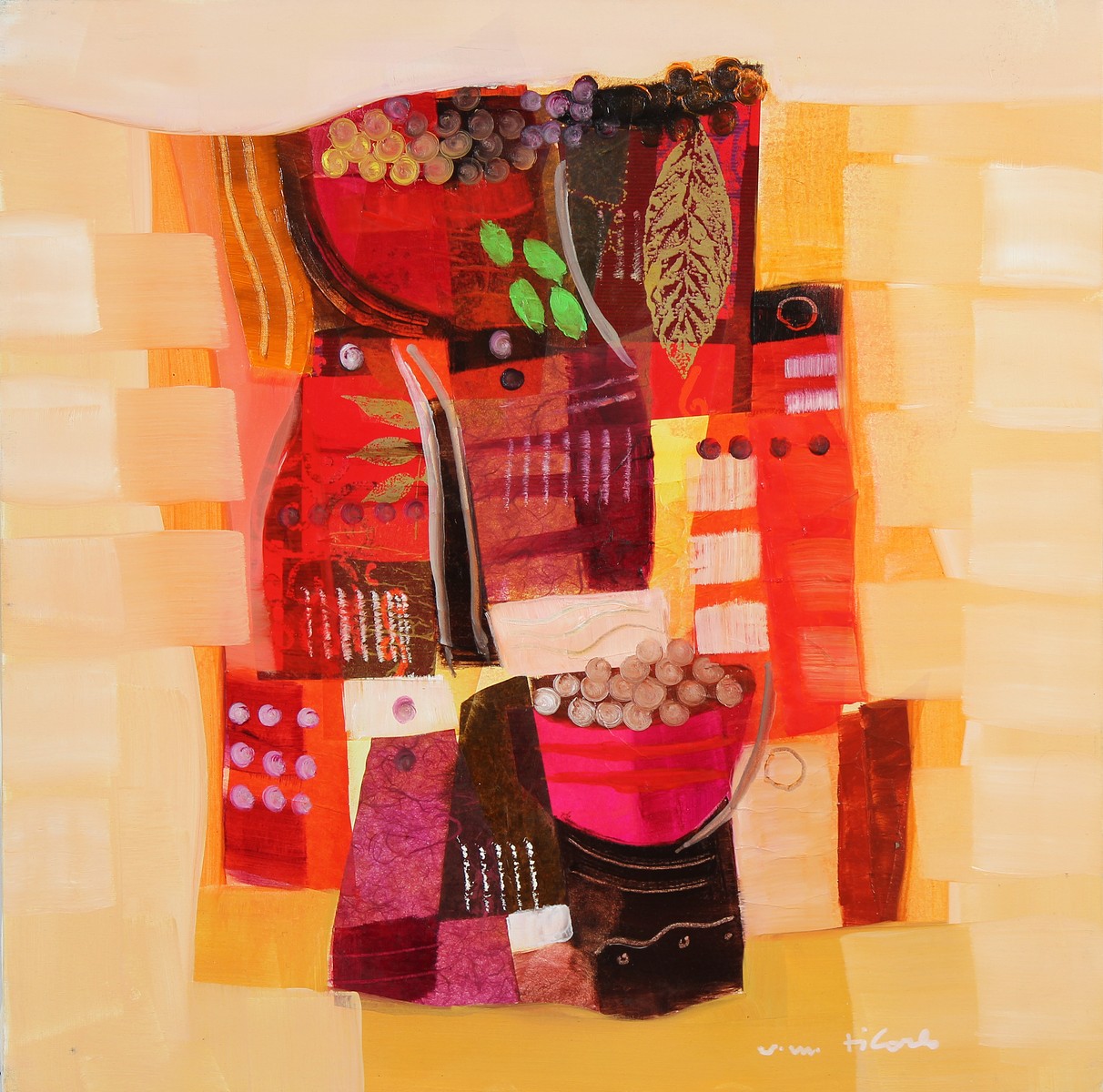 DI CARLO VITTORIO MARIA (n. 1937) Sari Sari. Tecnica mista e collage su tela. Cm 50,00 x 50,00. Firma in basso a destra e al retro. Opera archiviata come da documentazione allegata.