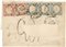 Antichi Stati Italiani - Napoli - Province Napoletane - 1861 - Coppia 5 grana (21 + 20b)Coppia orizzontale del 5 grana rosso carminio + striscia di tre del 2 grana azzurro con un esemplare intaccato (21 + 20b) su sovracoperta di lettera da Cosenza 23 SETT.1861 a Roma - tassata 24 baj - rara affrancatura multipla