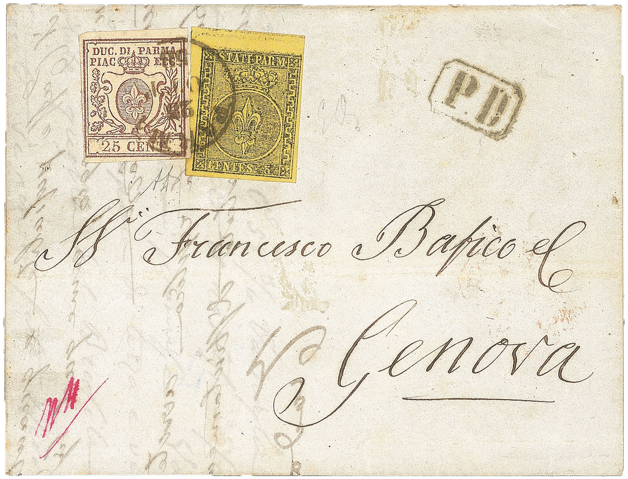 Antichi Stati Italiani - Parma - Lettera con affrancatura mista (1 + 10)