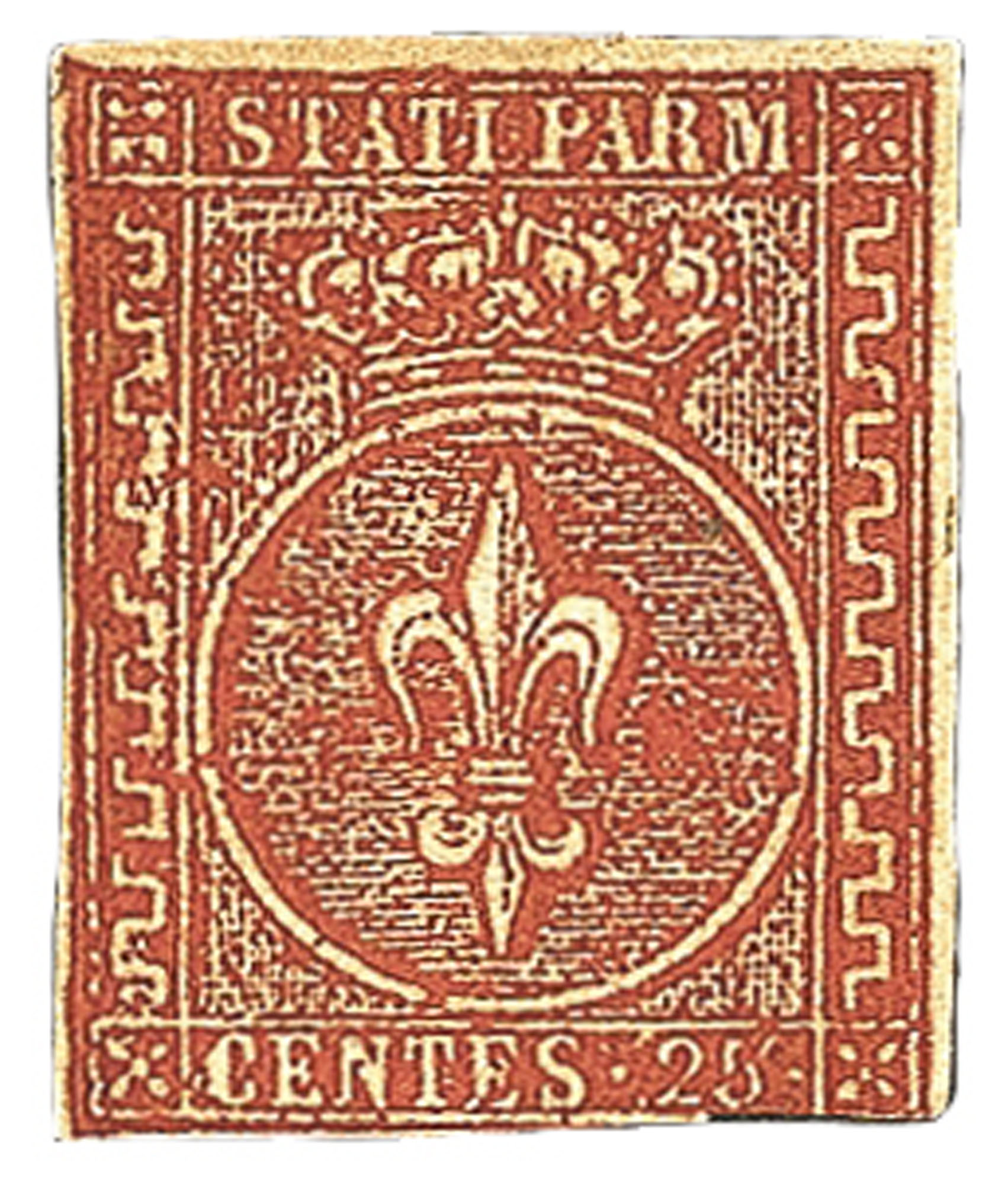 Antichi Stati Italiani - Parma - 1855 - 25 cent (8 cat.160000)25 cent bruno rosso (8 cat.160000) - uno dei due esemplari conosciuti nuovo con gomma originale - cert. Raybaudi + Enzo Diena - grande rarità