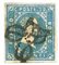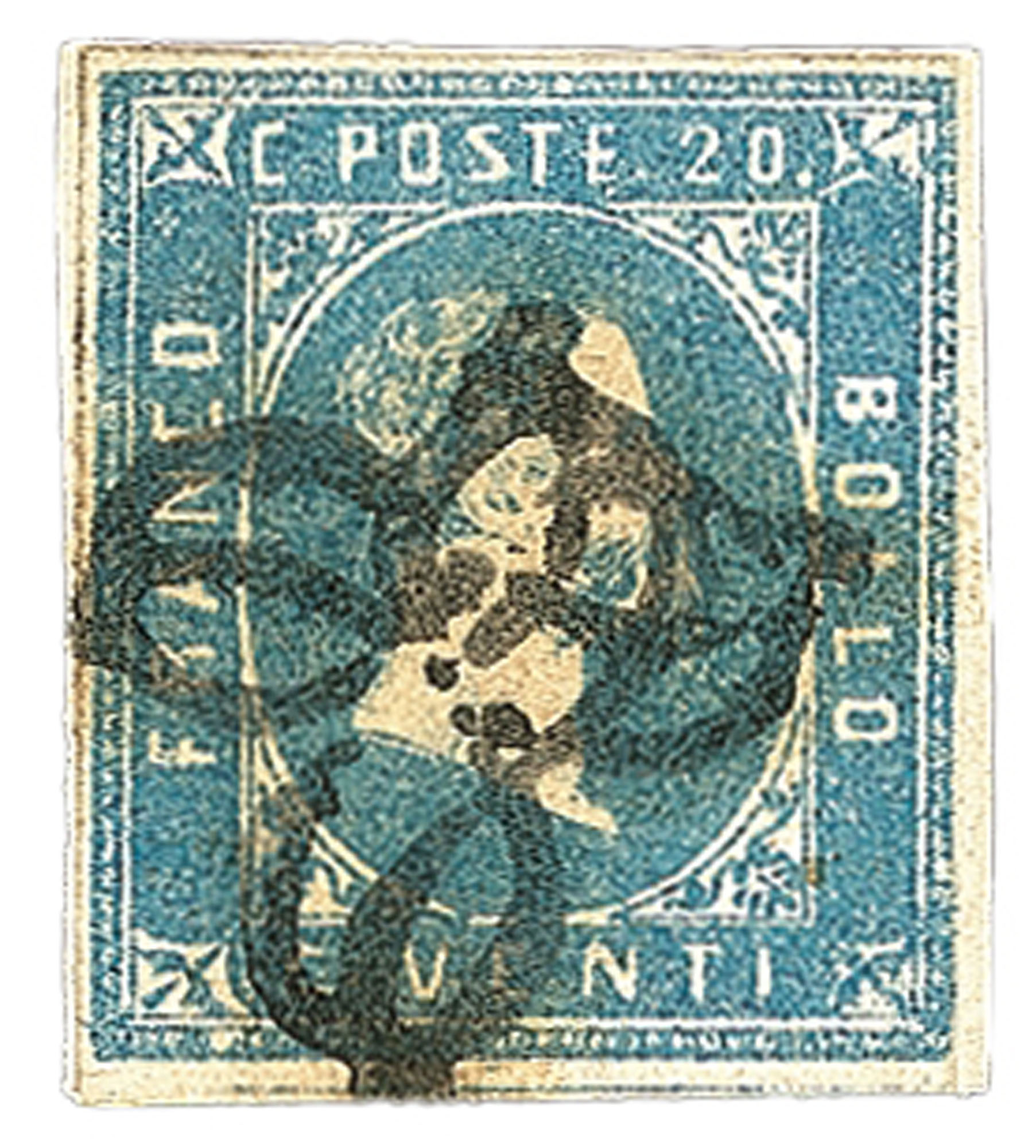 Antichi Stati Italiani - Sardegna - 1851 - 20 cent (2f)20 cent azzurro chiaro I° riporto (2f) su piccolo supporto cartaceo con buoni margini - a filo in alto a destra - doppio annullo a nodo di Savoia - raro