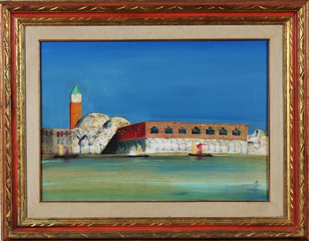MAGAZZINI SALVATORE (n. 1955) Venezia. Olio su tavola. Cm 70,00 x 50,00. Firma in basso a destra. Al retro titolo e firma per autentica. Cornice presente