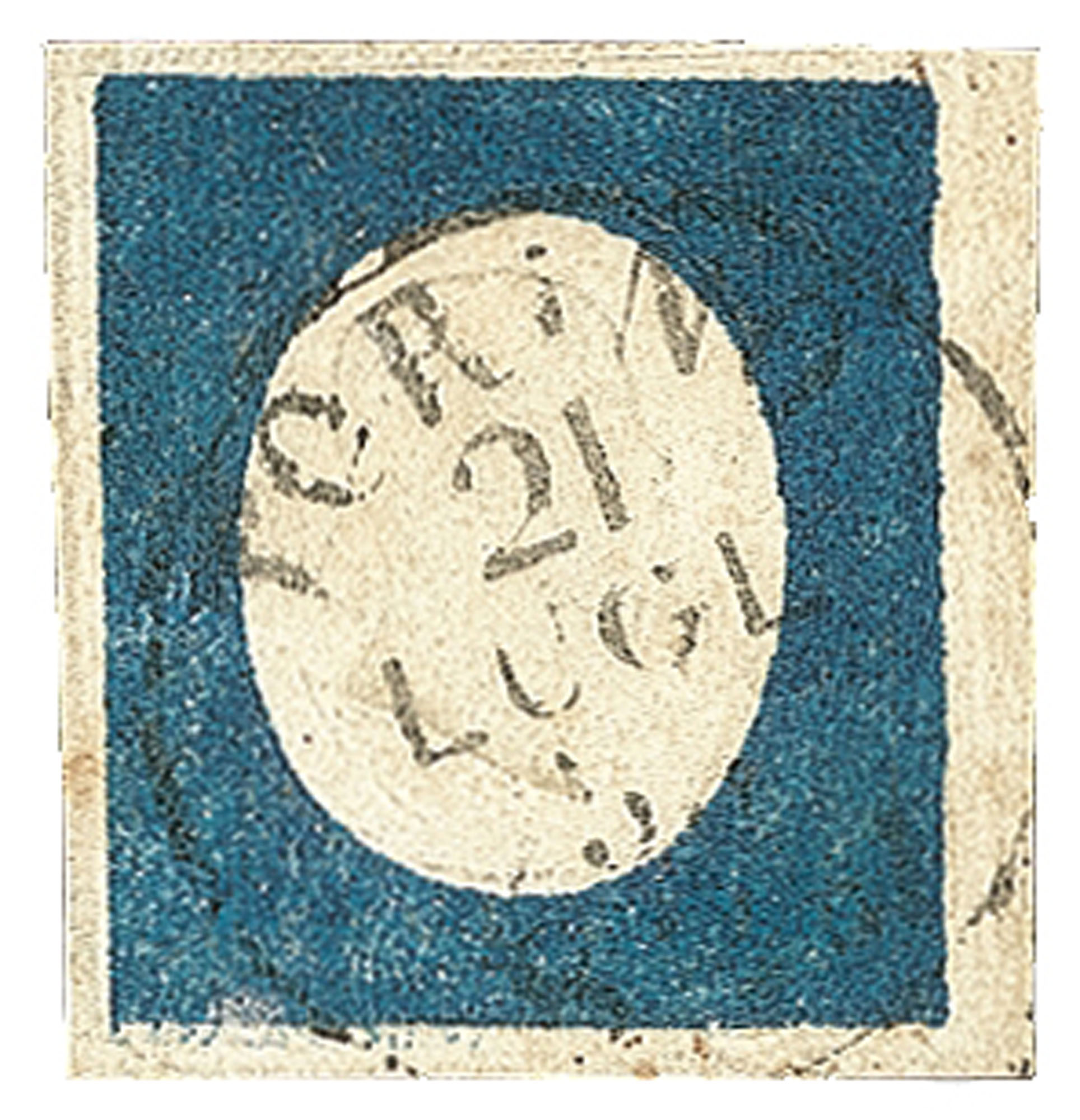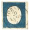 Antichi Stati Italiani - Sardegna - 1854 - 20 cent (8e varietà cat.13000)20 cent azzurro con doppia impronta a secco di cui una capovolta (8e varietà cat.13000) - annullo Torino 21 LUG.55 - firma Golinelli e cert AD - rarità