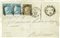 Antichi Stati Italiani - Sicilia - Lettera (6e + 5)Lettera da Catania 25-7 59 affrancata con coppia del 2 grana azzurro smorto I tavola carta di Napoli + 1 grano verde oliva chiaro III tavola (6e + 5) per Palermo - cert. Raybaudi Luigi + Maurizio