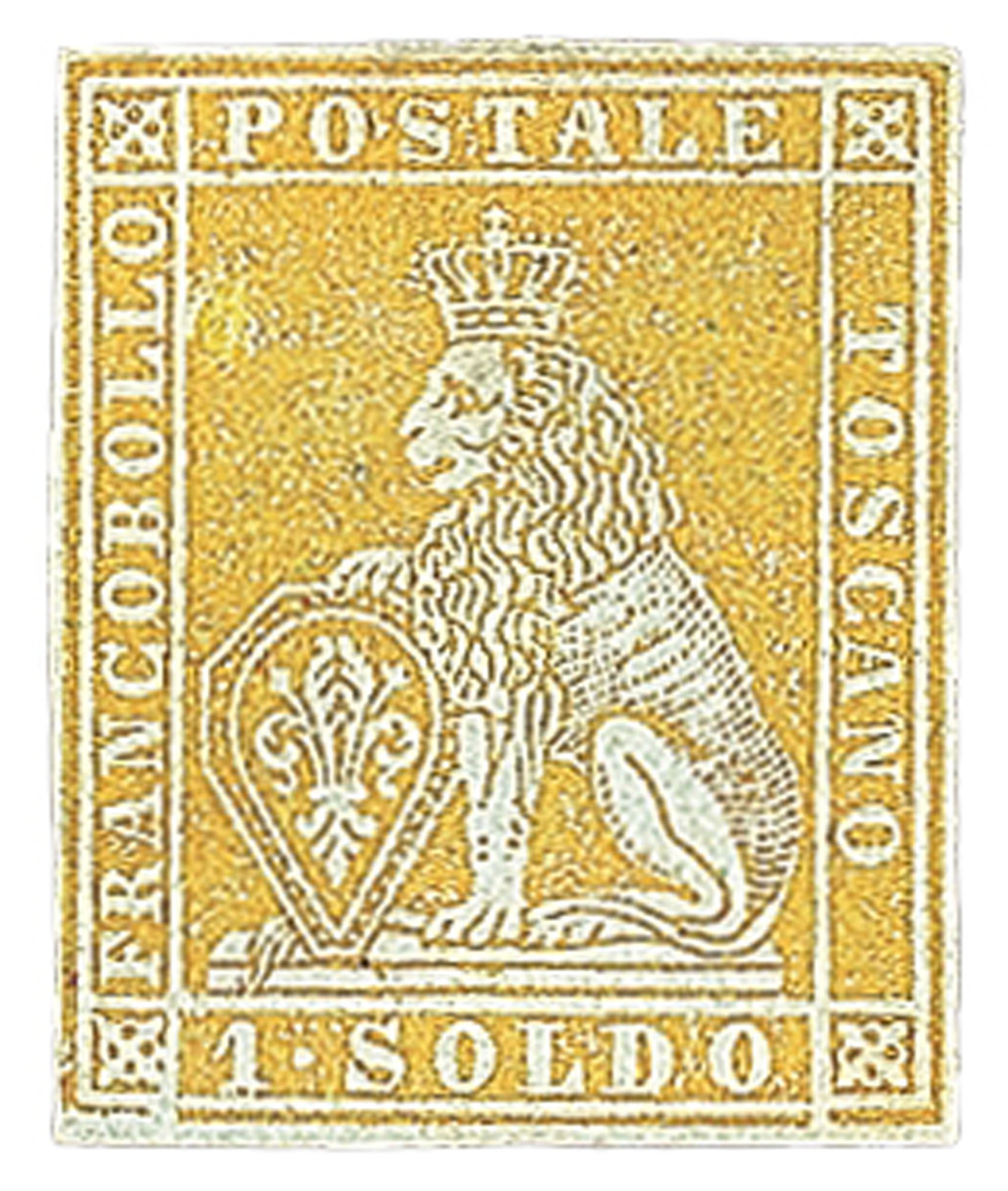 Antichi Stati Italiani - Toscana - 1851 - 1 soldo (2a cat.45000)1 soldo giallo limone su azzurro (2a cat.45000) - nuovo con gomma parziale - leggermente difettoso ma di ottimo aspetto - cert. Enzo Diena + Bolaffi