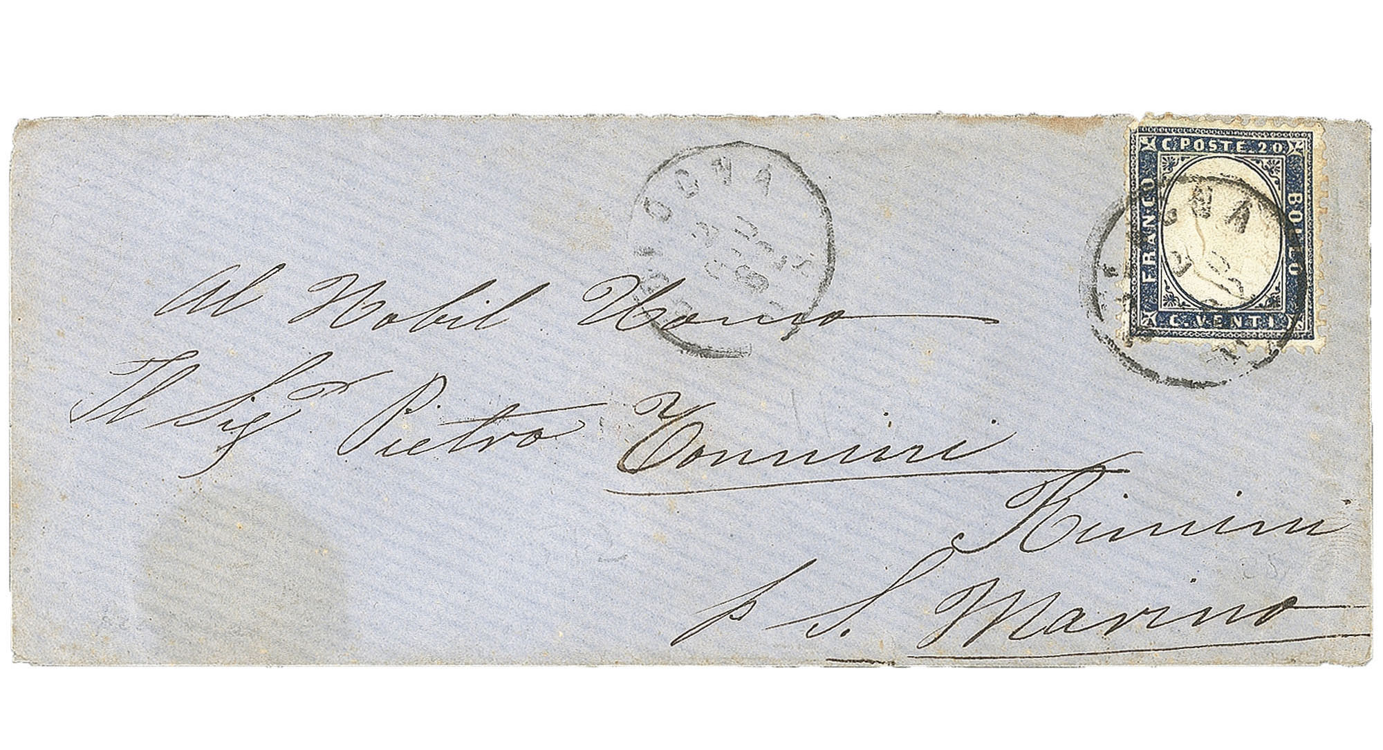 Prefilateliche - Bustina (2c)Bustina affrancata con 20 cent (2c) da Bologna 2 GIU 62 per San Marino - lievi difetti - probabile unica dentellata per tale destino