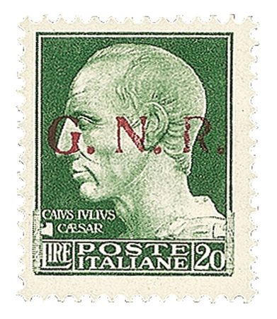 RSI - G.N.R. Brescia - 1943 - 20 lire (487/II)20 lire (487/II) - R difettoso (posiz. 25) - gomma integra - cert. oro Raybaudi