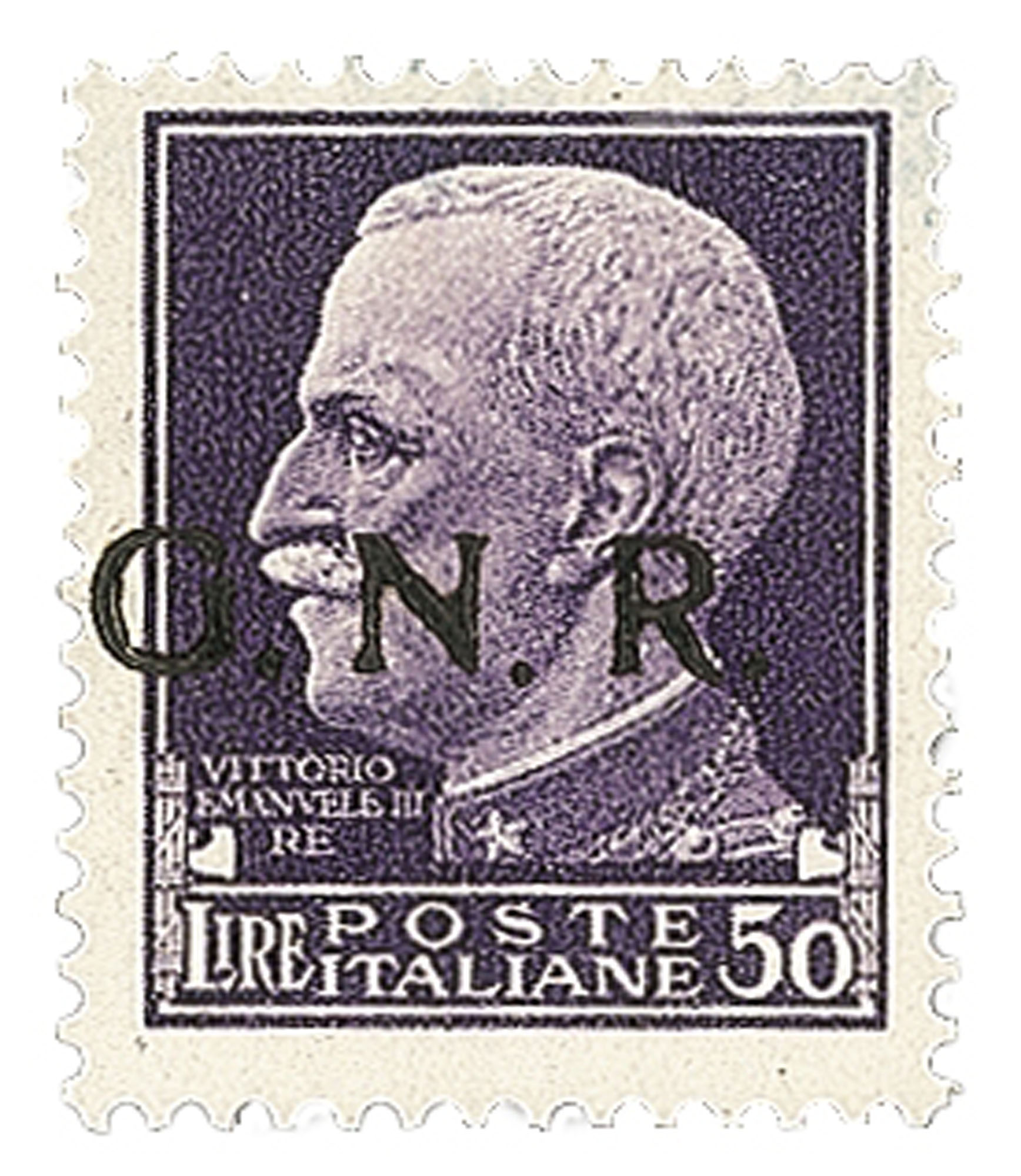 RSI - G.N.R. Brescia - 1943 - 50 lire (489/Ifd errore pd)50 lire (489/Ifd errore pd) - punto piccolo dopo N (pos. 99) - gomma integra - splendido - grande rarità - cert. Sorani