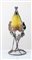 Lampada da tavolo. Francia. Cm. 40, diam complessivo cm. 16. Base in ferro battuto e motivi a tralci di edera; Paralume in pasta di vetro a forma di calice di fiore rovesciato, nelle gradazioni del giallo e del colore castagna; reca firma Degué su paralume