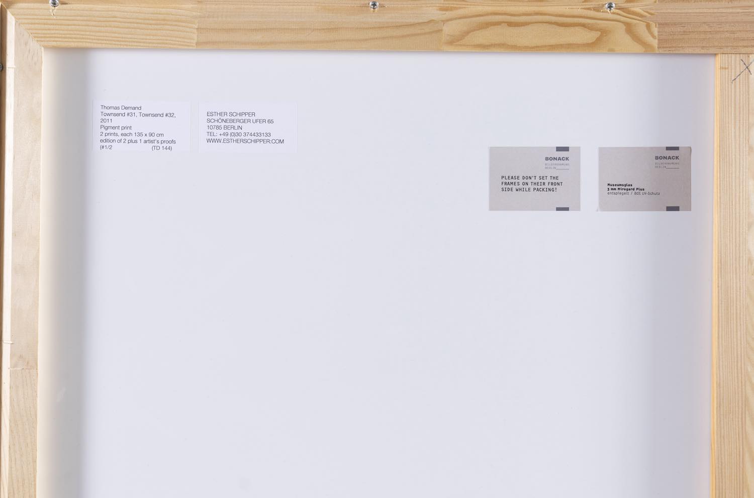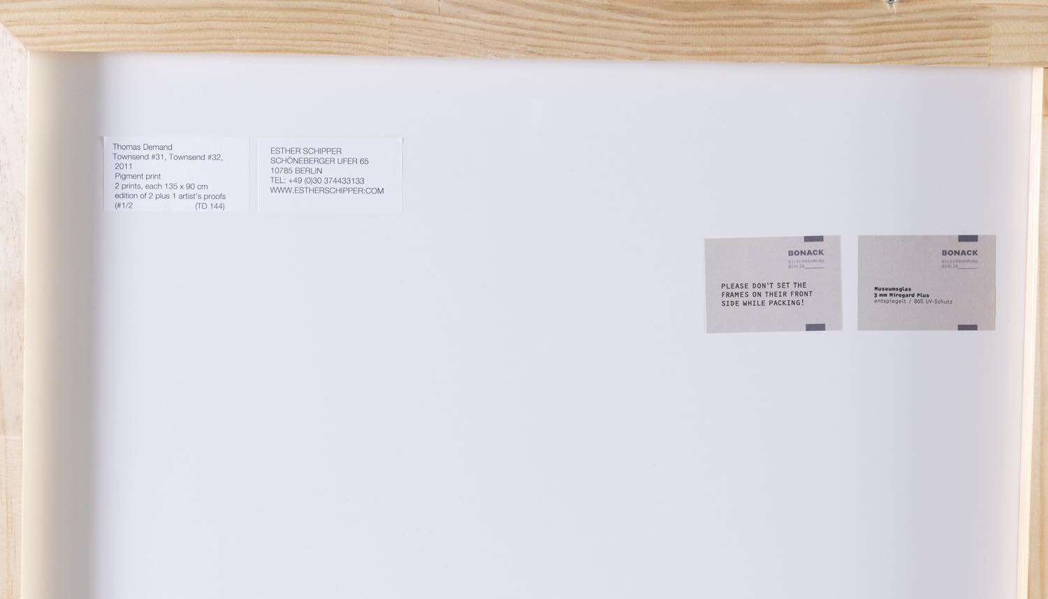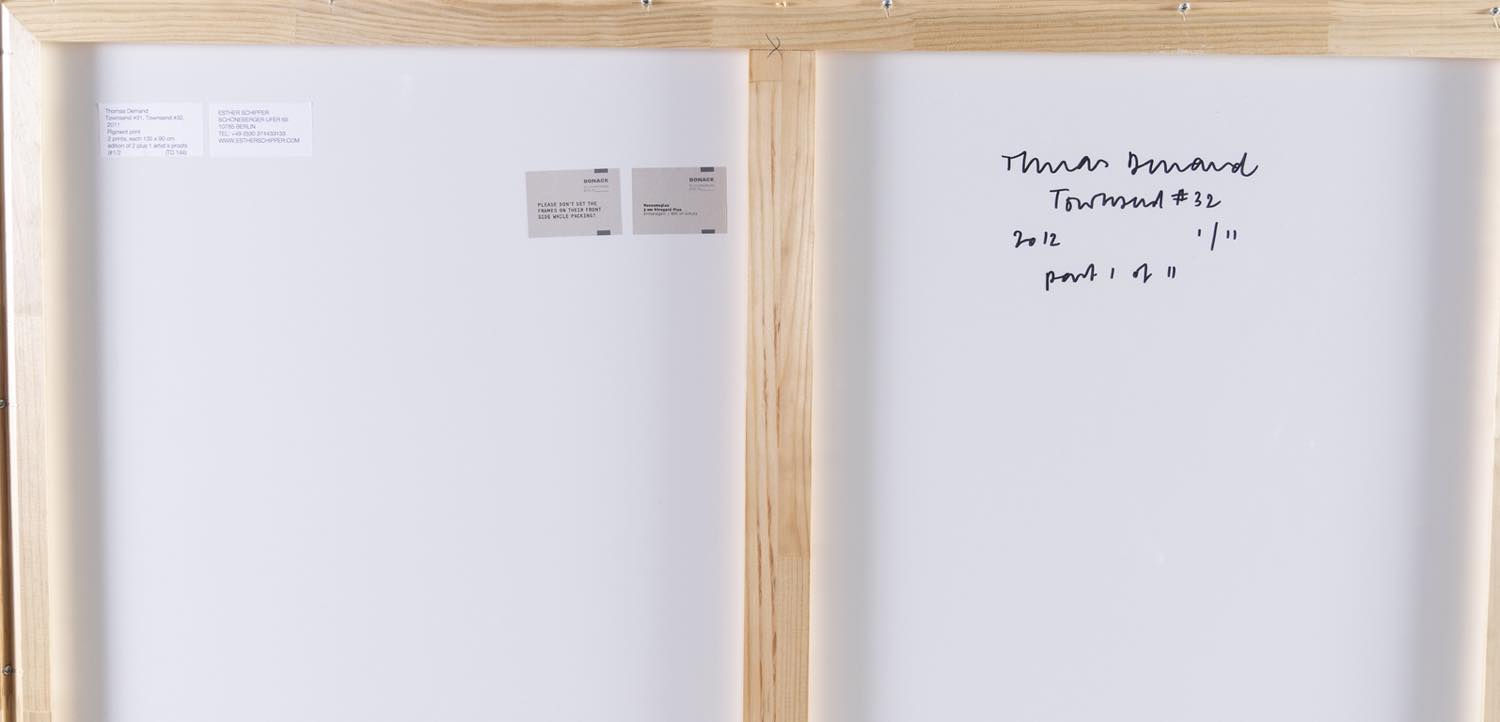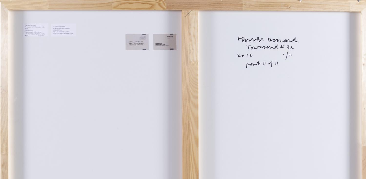 Thomas Demand (Monaco di Baviera 1964), “Towsend #31, Towsend #32”, 2011-2012. Fotografie stampe a pigmenti esemplare 1/2, recano al retro firma, titolo, data ed esemplare ed etichette della Galleria Ester Schipper – Berlino, H cm 135x90 Provenienza: Collezione Privata Gruppo Industriale Maccaferri; Galleria Esther Schipper – Berlino.