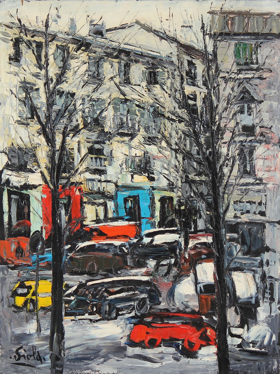 VIOLA GIUSEPPE (n. 1933) Paesaggio. Olio su tela . Cm 60,00 x 80,00. Firma in basso a sinistra.
