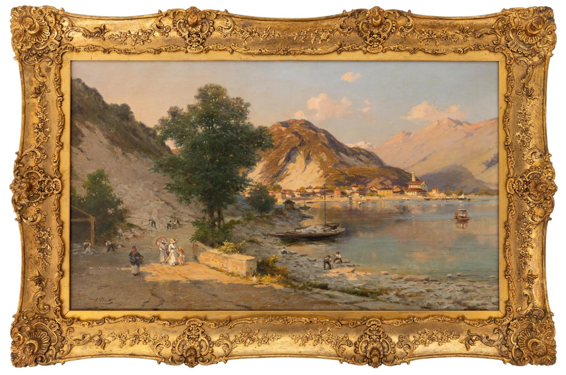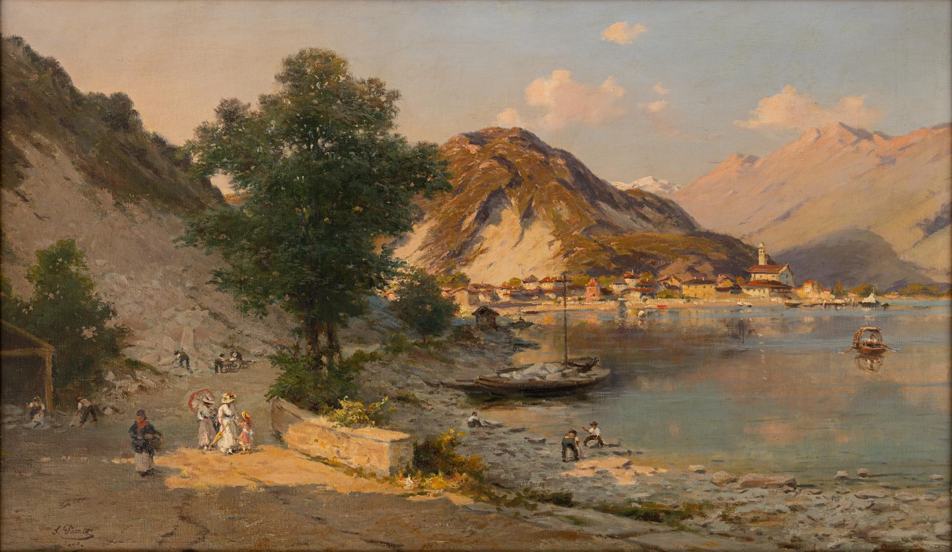 Silvio Poma - Passeggiata a Feriolo (Lago di Como) - Trescore Balneario (BG) 1841 - Turate (CO) 1932 - Olio su tela cm 68x120 - Pubblicato sul catalogo Mondadori tavola a colori n. 34