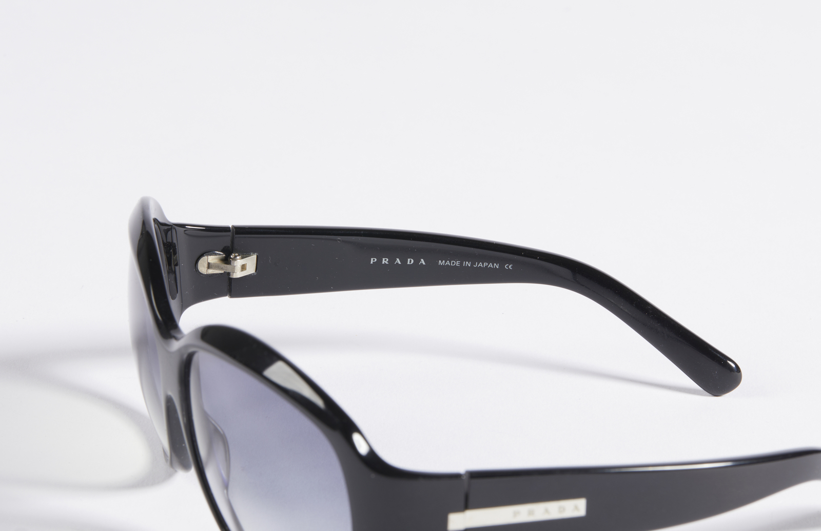 PRADA MILANO Occhiali da sole. . . Occhiali con montatura nera e lenti nere.