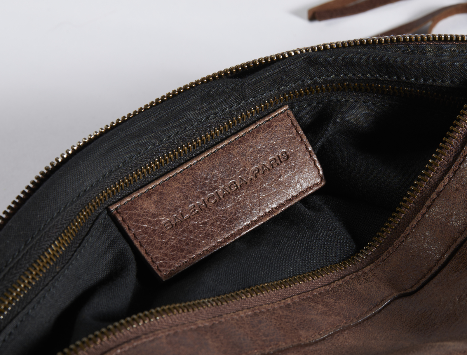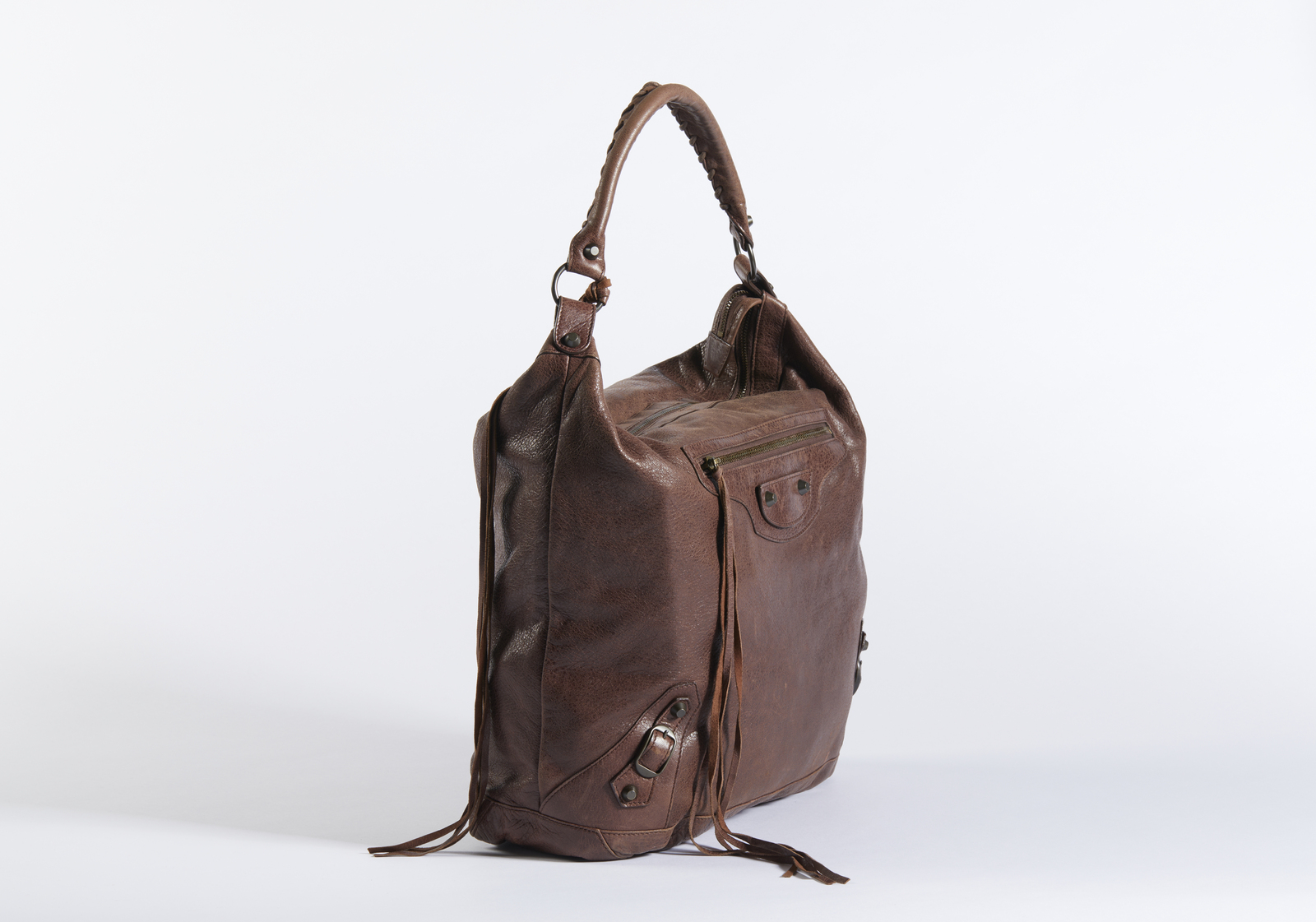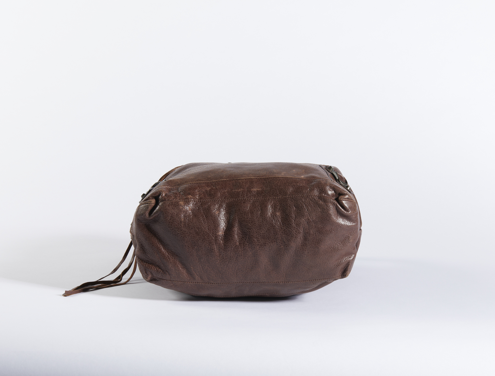 BALENCIAGA Borsa di pelle marrone. . Cm 29,00 x 32,00 x 12,00. Borsa in pelle marrone, monospalla. Presente una piccola tasca con zip esternamente. Internamente rivestita con tessuto nero, tasca interna con zip.