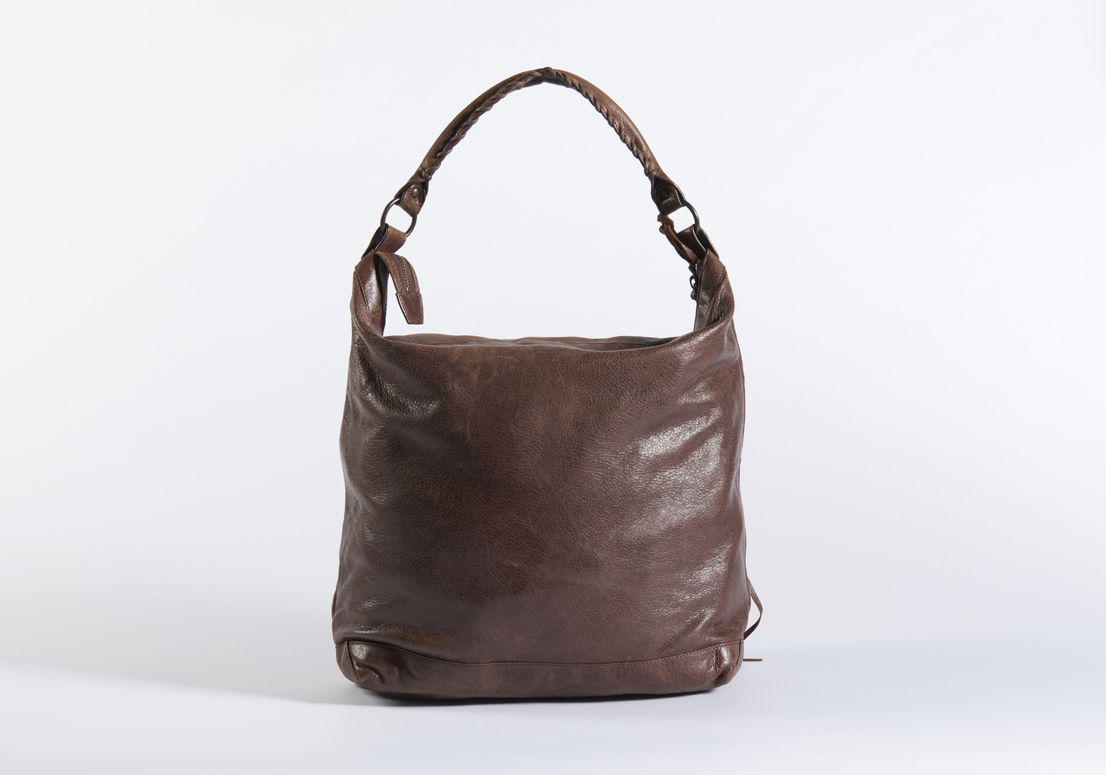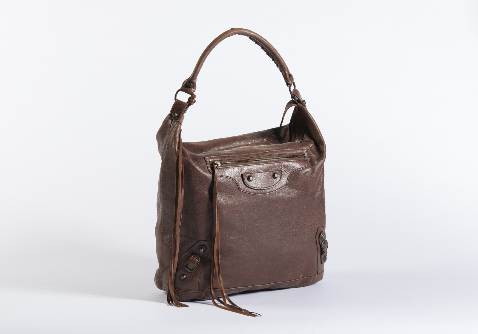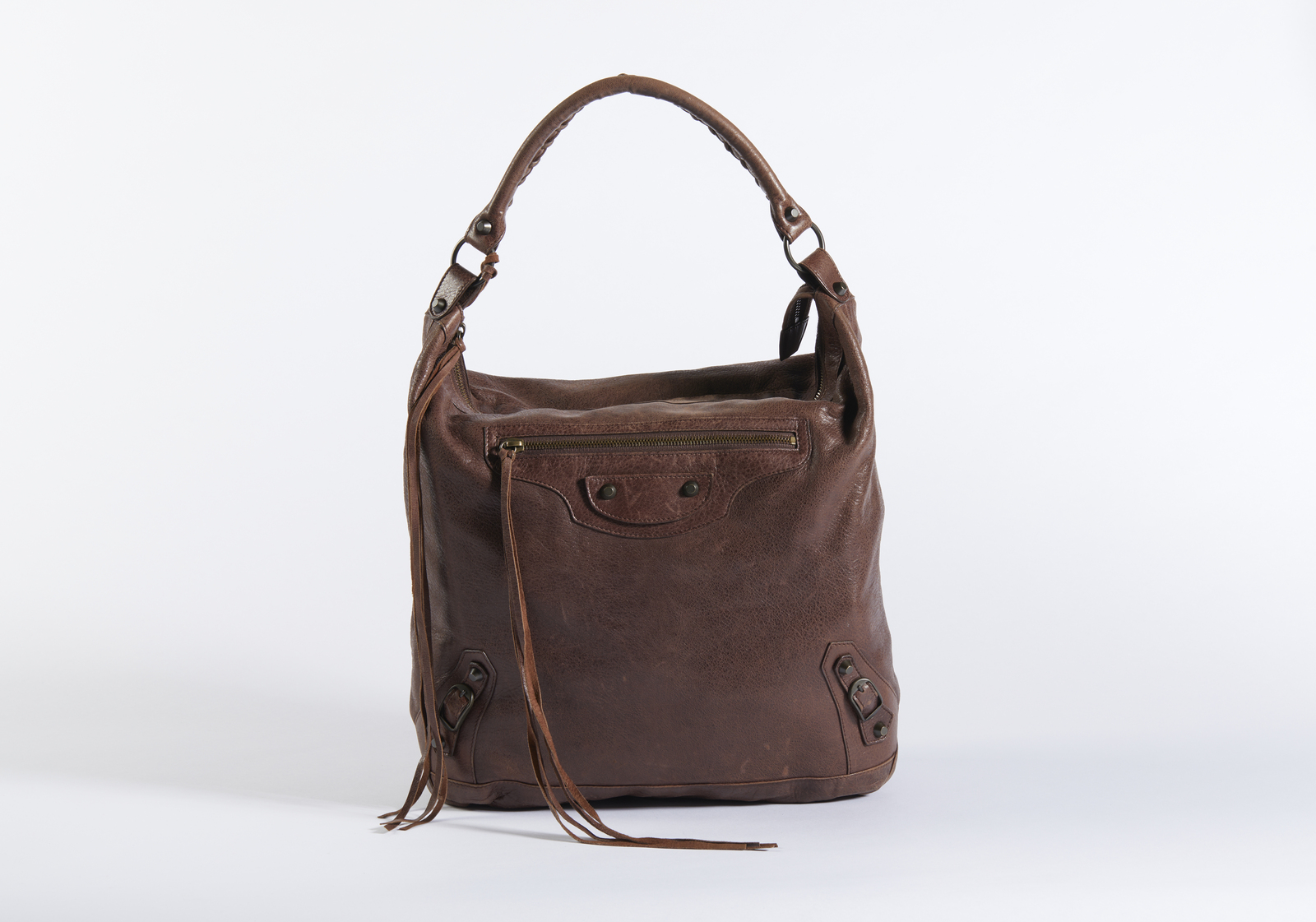 BALENCIAGA Borsa di pelle marrone. . Cm 29,00 x 32,00 x 12,00. Borsa in pelle marrone, monospalla. Presente una piccola tasca con zip esternamente. Internamente rivestita con tessuto nero, tasca interna con zip.