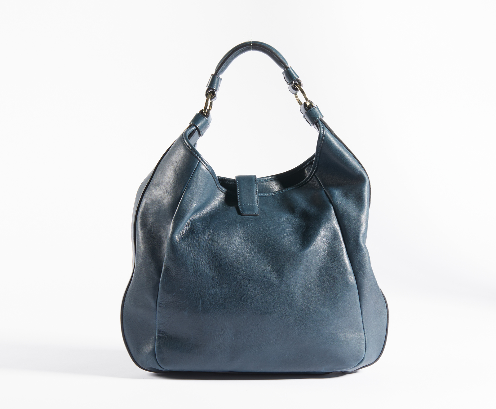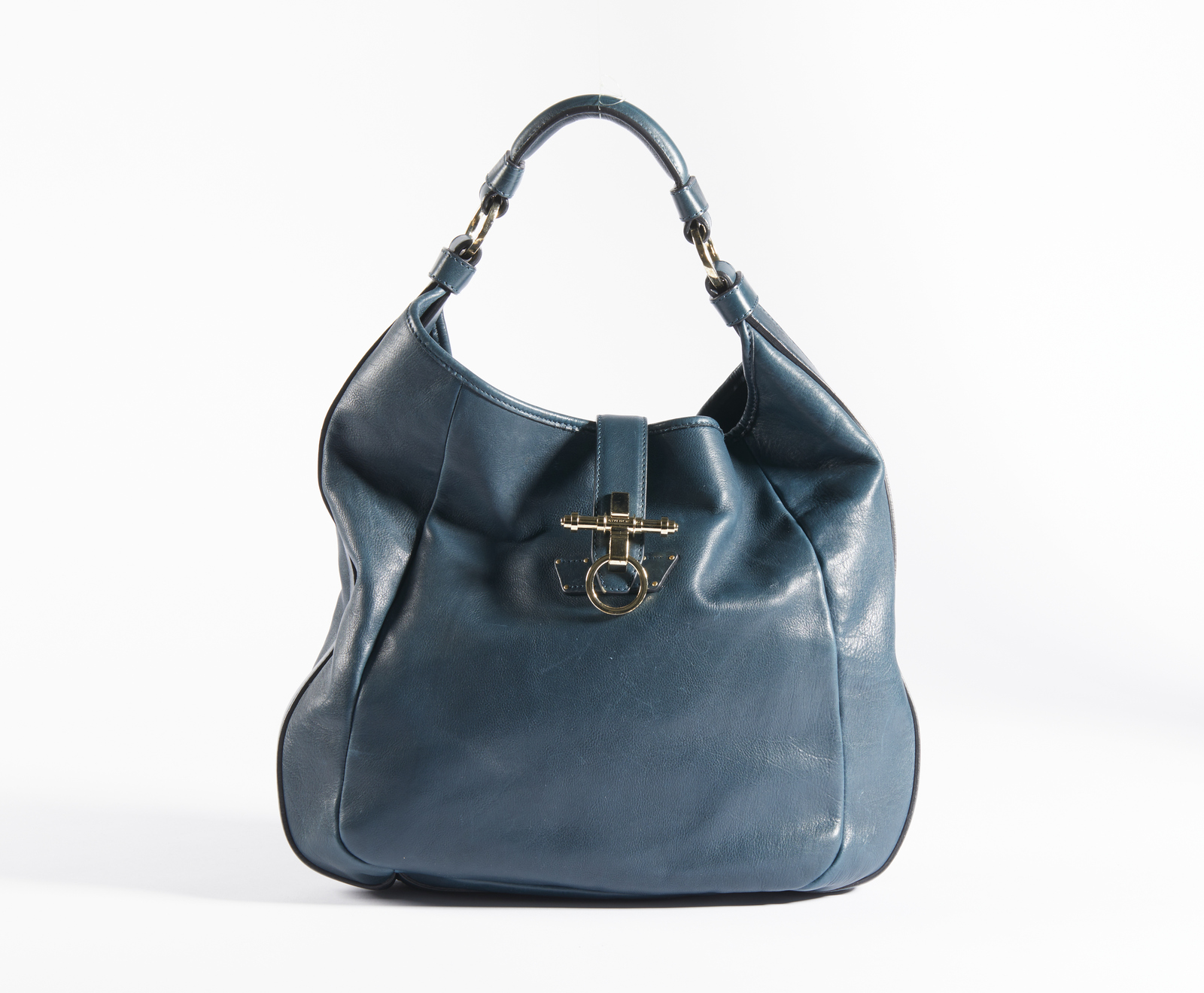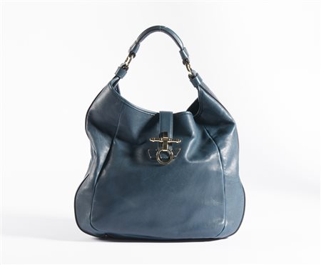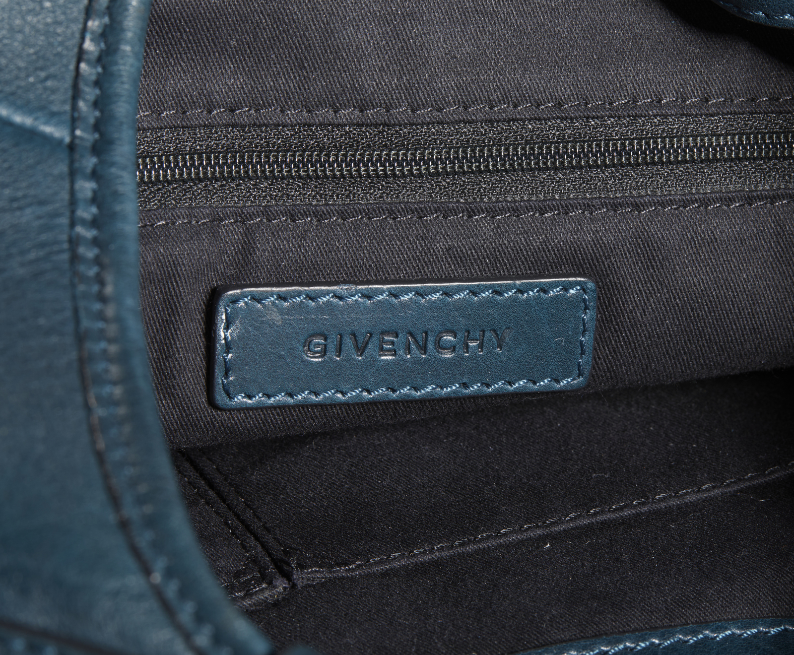 GIVENCHY Borsa in pelle. Pelle. Cm 36,00 x 35,00 x 9,00. Borsa in pelle blu o verde petrolio a spalla. Chiusura con moschettone e calamita con hardware color oro. Interno in tessuto nero con tasca con zip e logo interno e una seconda tasca a scomparsa.