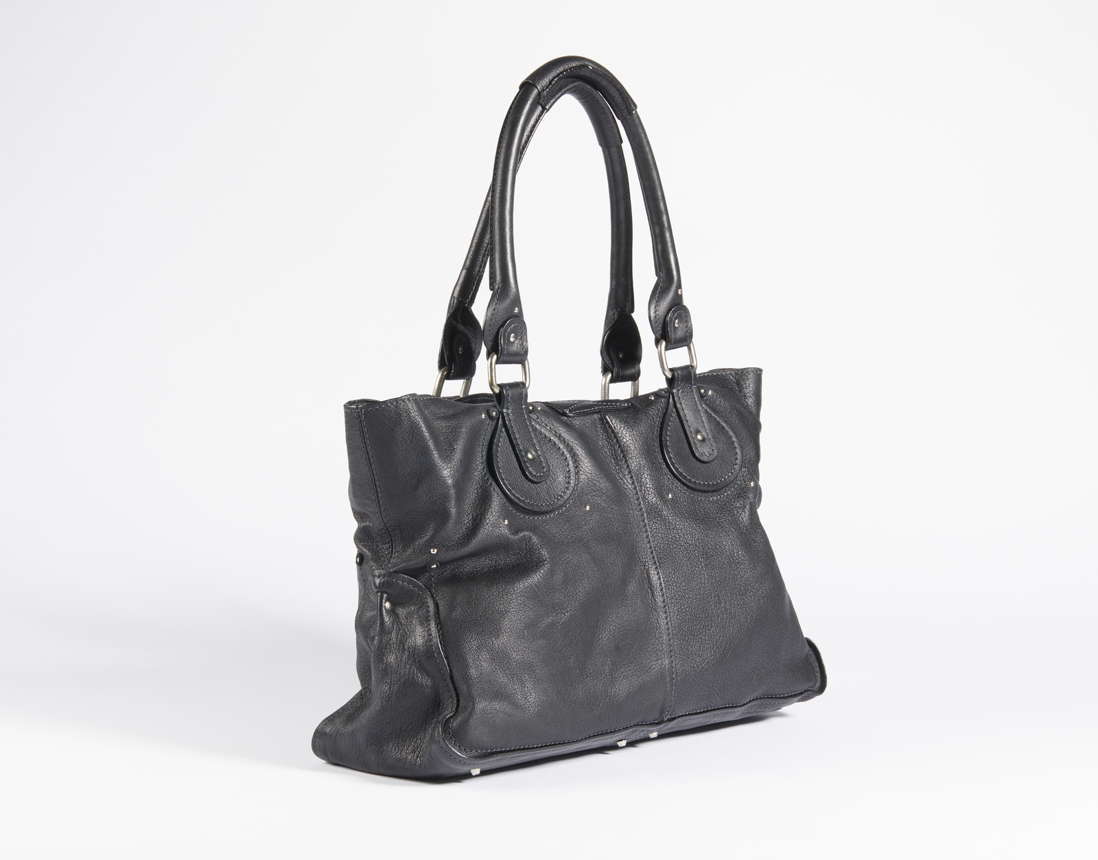 CHLOE' Borsa Chloè in pelle nera. Pelle. Cm 45,00 x 31,50 x 17,00. Borsa in pelle nera con chiusura con lucchetto. Interno in tessuto. Sono presenti due grandi tasche interno con chiusura con lampo. A chiusura della borsa è presente un lucchetto e la sua chiave.