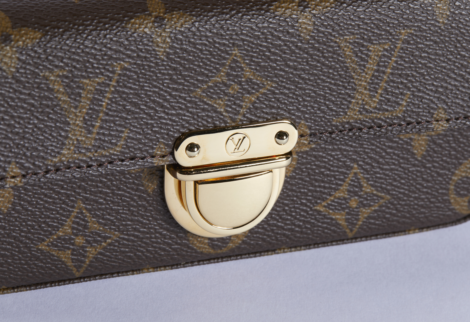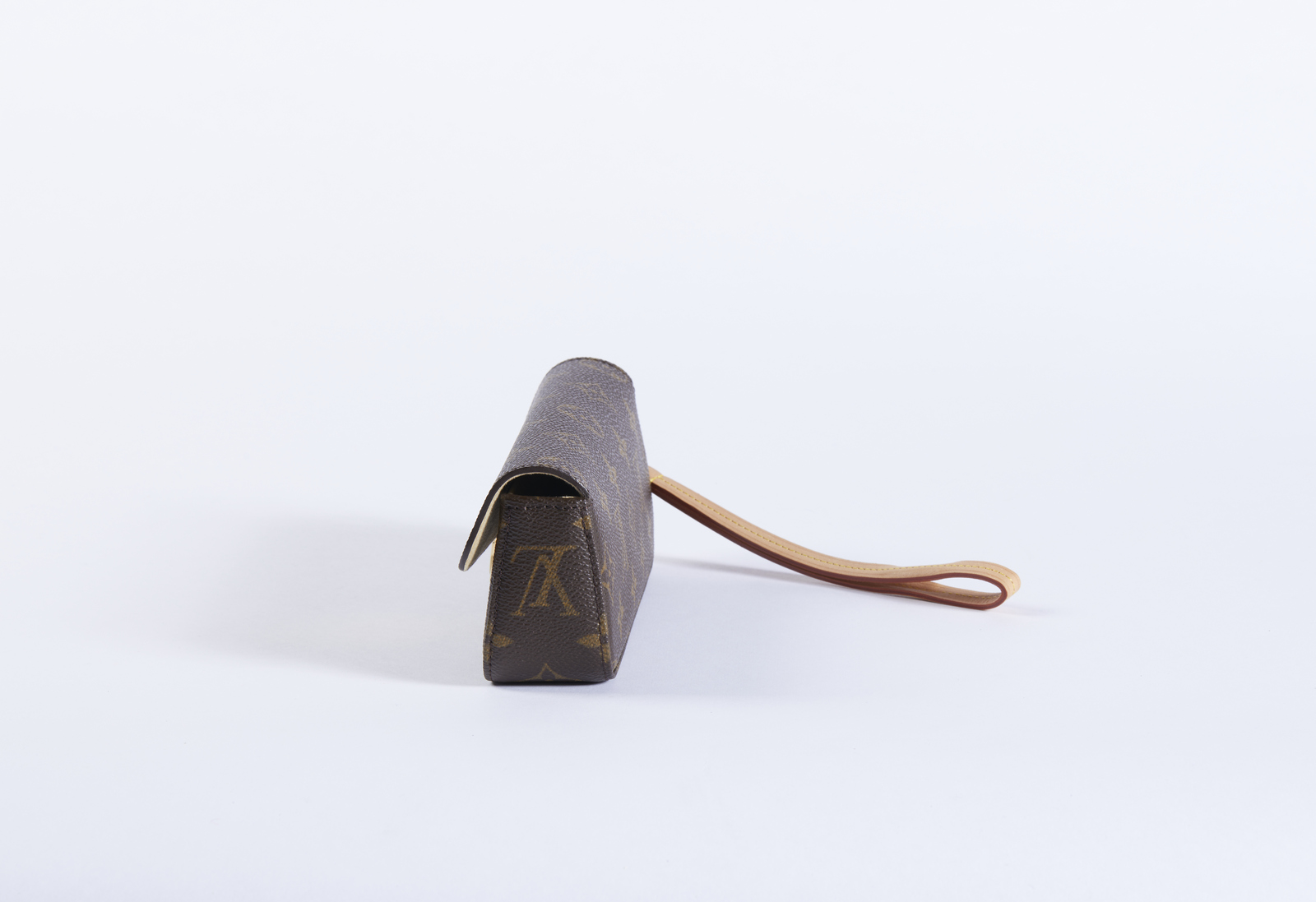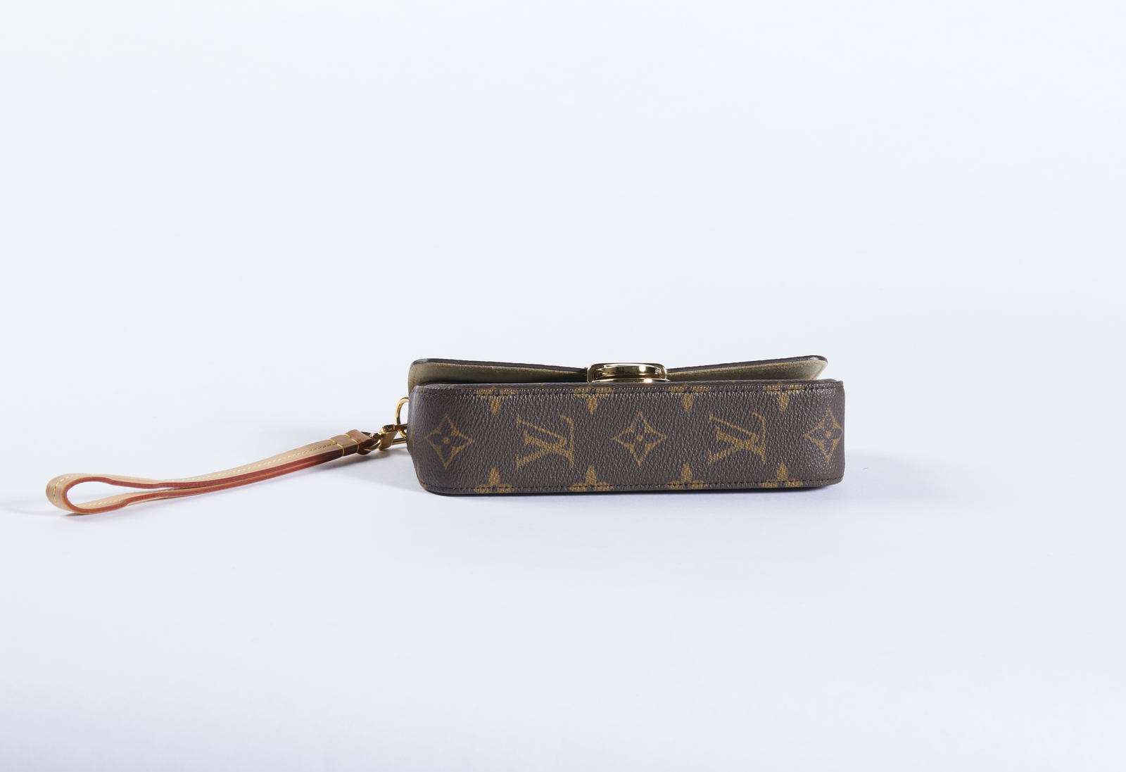 VUITTON LOUIS Borsa Clutch. . Cm 9,00 x 18,00 x 4,50. Piccola borsa clutch nell'iconico tessuto con stampa monogram LV nei toni del marrone. Hardware color oro. Dettagli in vacchetta naturale.