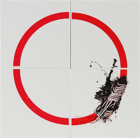 SCANAVINO EMILIO (1922 - 1986) Senza titolo. serigrafia a 3 colori . Cm 43,00 x 43,00. Quattro piastrelle in ceramica decorate, prodotte da Cedit Italy. Multiplo di 100.
