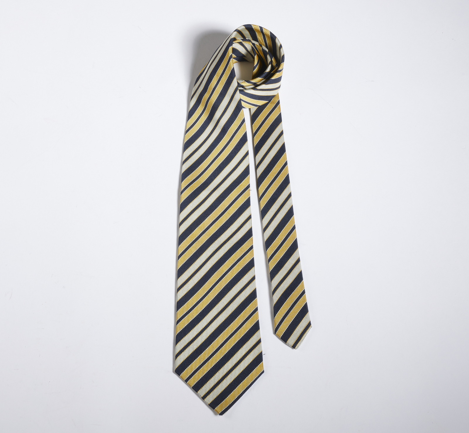 EDDY MONETTI Cravatta a righe. Seta. . Classica cravatta in seta jacquard Eddy Monetti, con fantasia intessuta di righe trasversali blu scuro, giallo oro, bianco avorio.