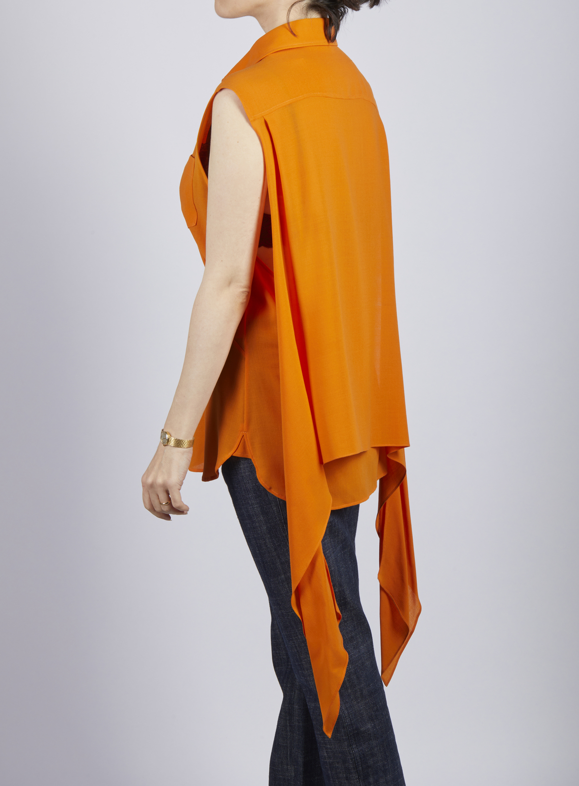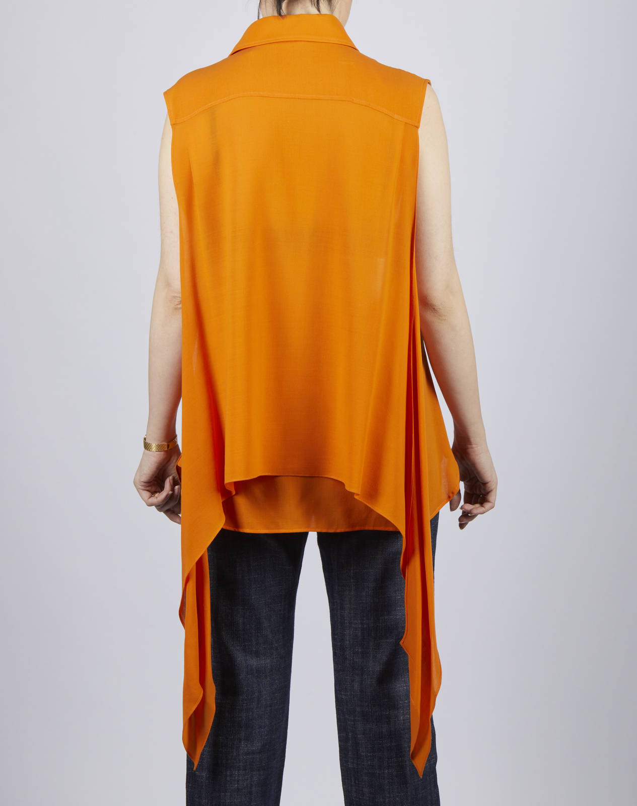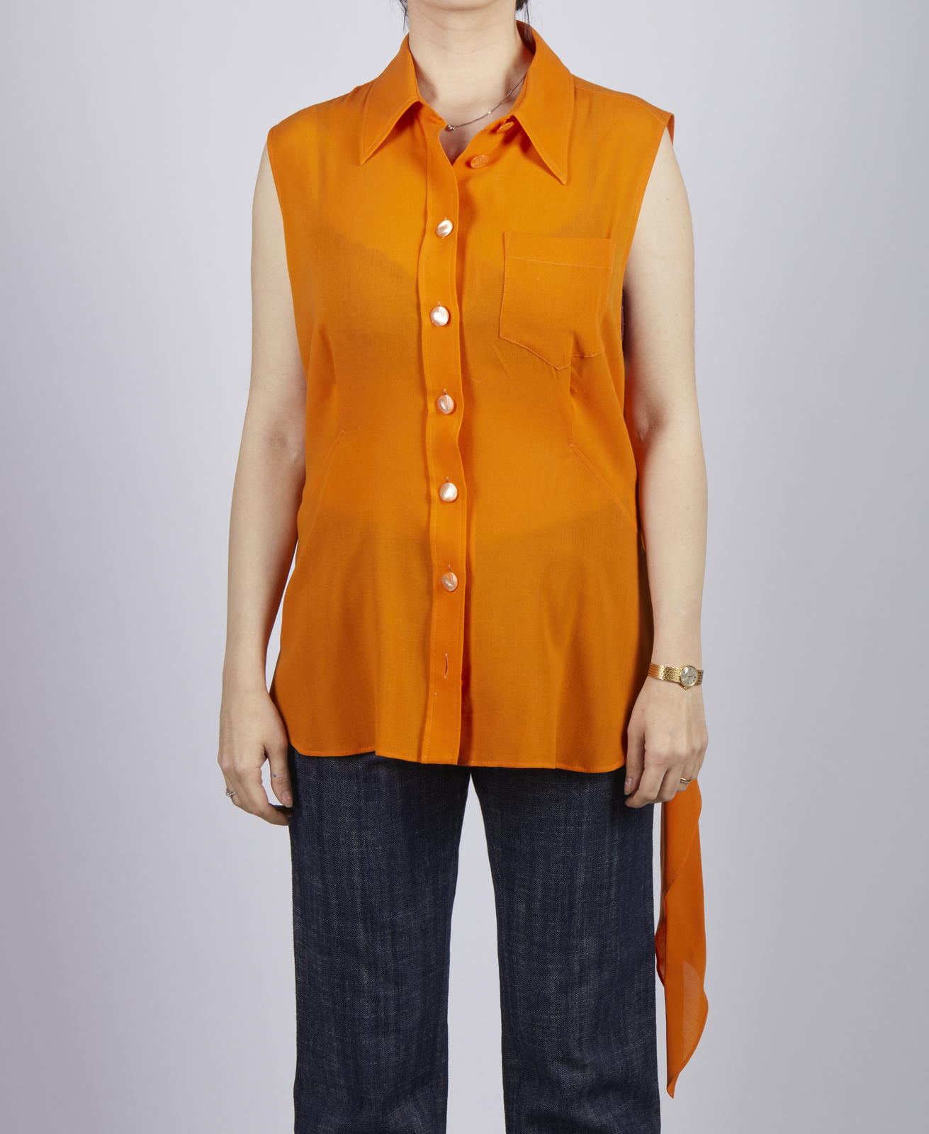 HERMES Camicia arancione. Seta. . Camicia senza maniche di colore arancione. Bottoni con logo Hermes. Taglia 40.