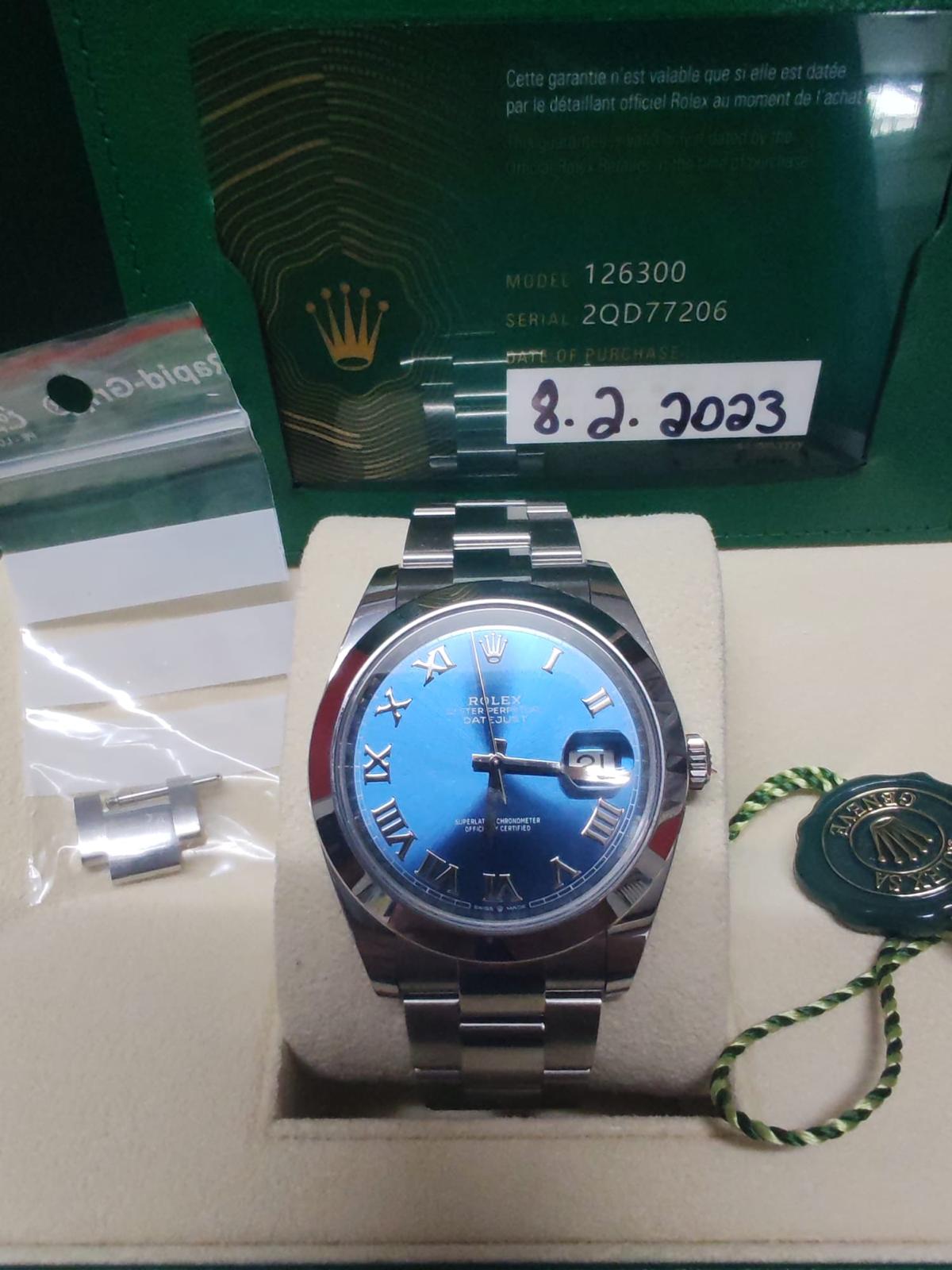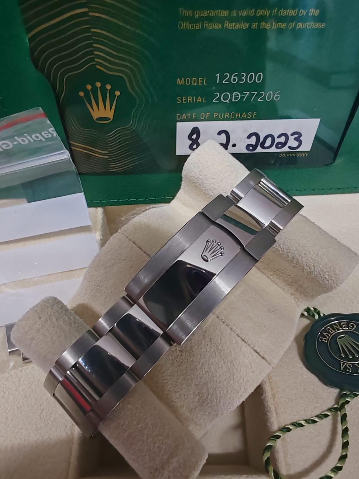 Modello (Orologio) Datejust 41 Numero di referenza 126300 Carica Automatico Materiale della cassa Acciaio Materiale cinturino Acciaio Anno di produzione 2023 Condizione pari al nuovo Con scatola originale e documenti originali Calibro Carica Automatico Cassa Materiale della cassa Acciaio Diametro 41 mm Impermeabile 10 ATM Materiale lunetta Acciaio Vetro Vetro zaffiro Cinturino Materiale cinturino Acciaio Colore cinturino Acciaio Chiusura Déployante Materiale chiusura Acciaio Funzioni Data